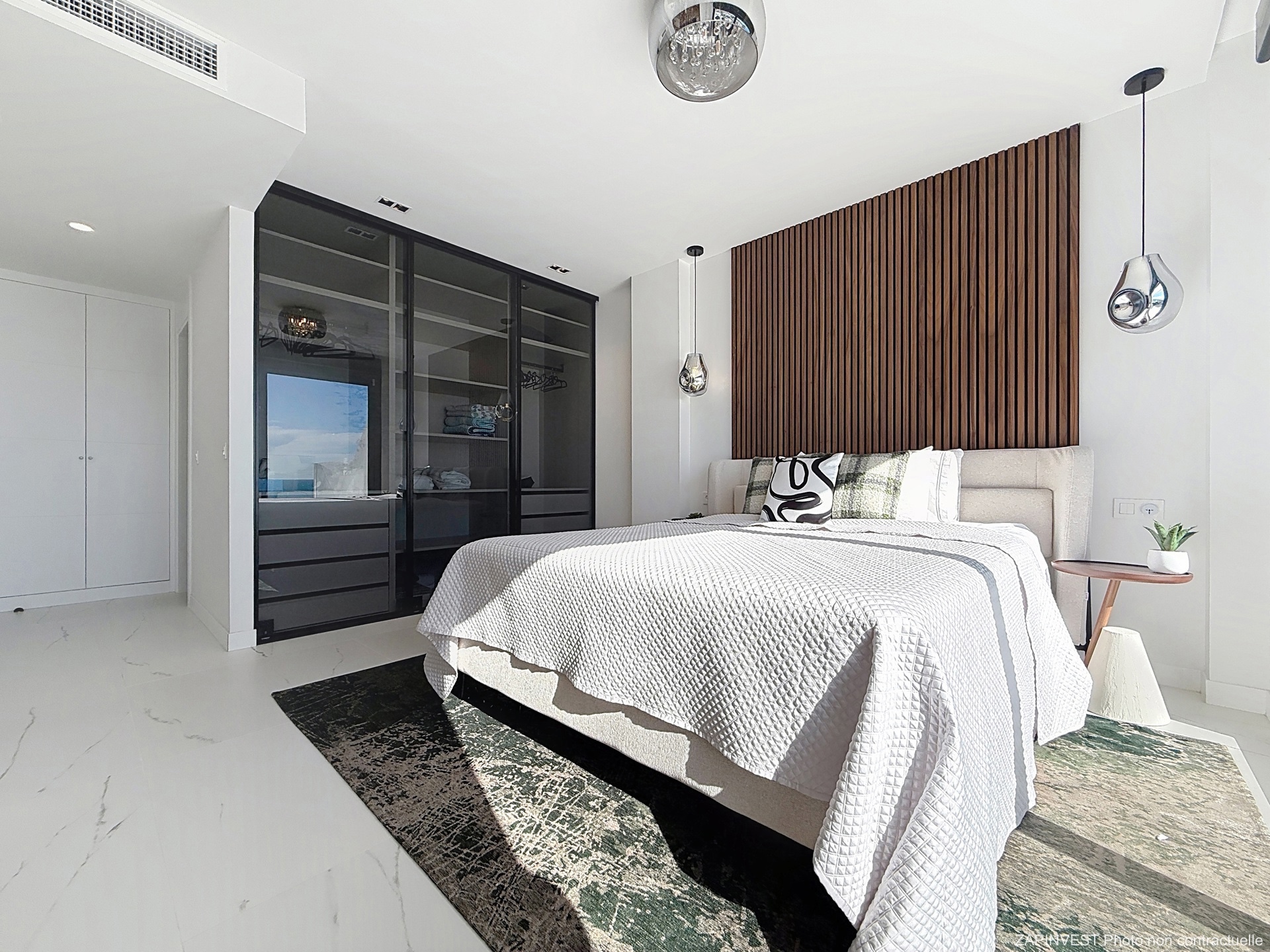 Implanté au sein d’une petite urbanisation contemporaine au design moderne, cet appartement de 2 chambres et 2 salles de bain en suite offre un cadre de vie privilégié, entre confort, intimité et panorama mer à couper le souffle. Situé sur une légère colline, il bénéficie d’une position dominante qui maximise les vues tout en restant à seulement 800 mètres de la plage.