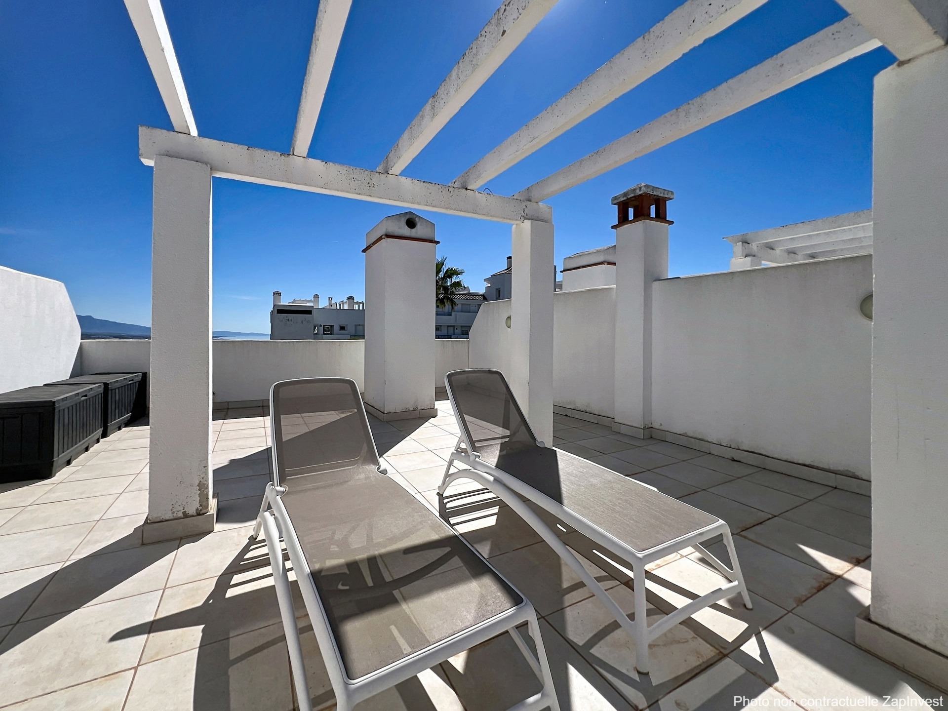 Idéalement situé à Casares Costa, dans un environnement agréable et paisible, l’appartement se trouve à seulement 2,5 km de la plage et à proximité immédiate des commerces, du port de La Duquesa et du centre d’Estepona.