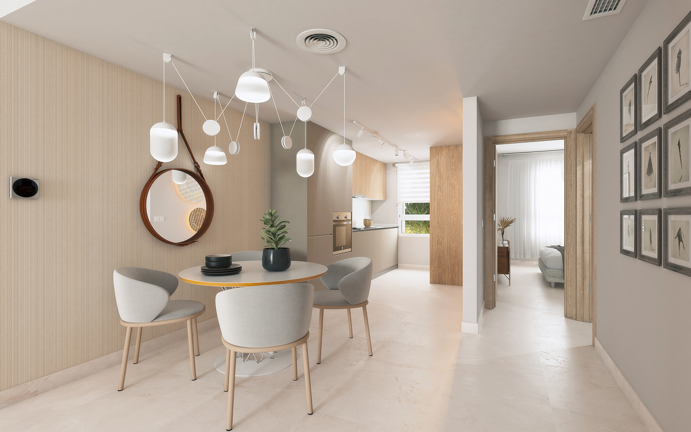 La cuisine est entièrement équipée et les meubles ont été choisis dans des tons neutres, reposants et naturels.