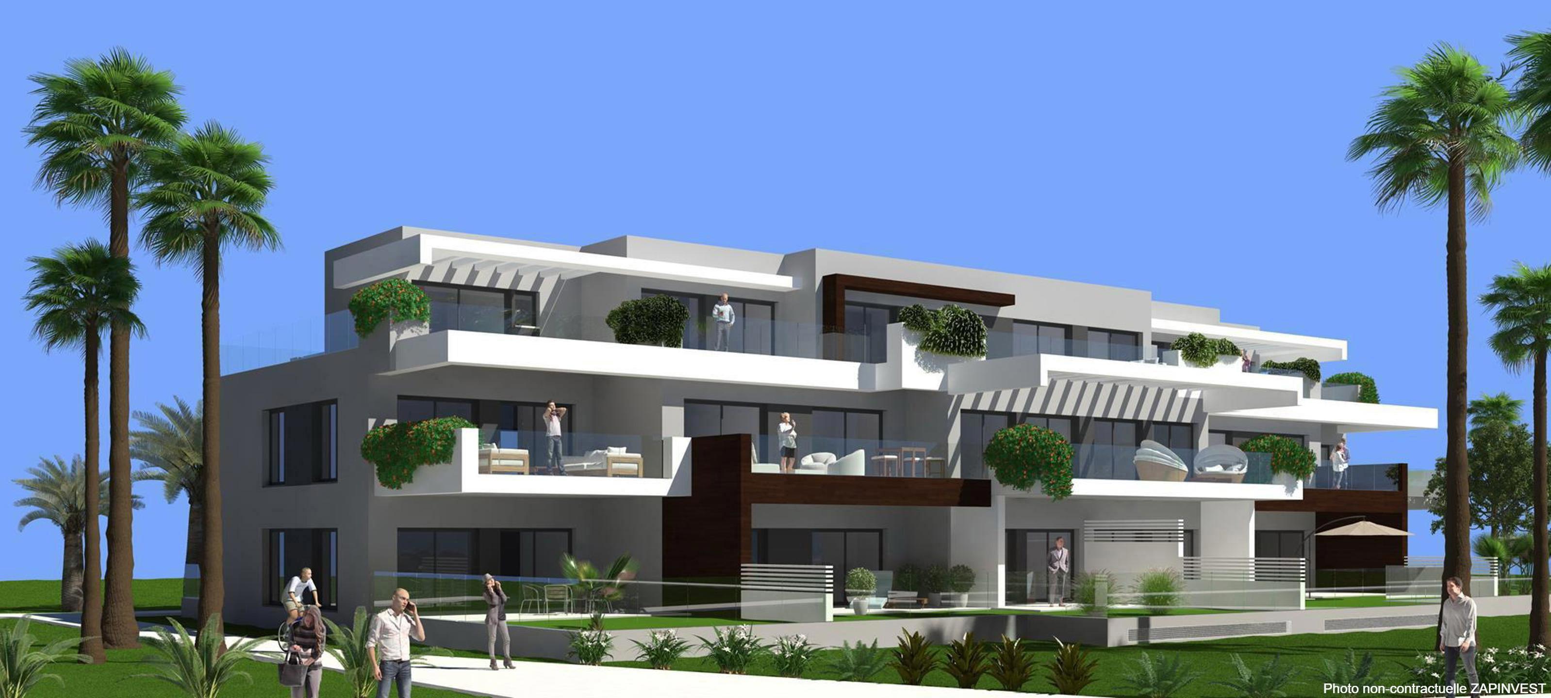 Nouveau projet sur plan, de seulement 74 appartements de 2 et 3 chambres distribué en 7 blocs distribué sur deux étages avec un design contemporain, idéalement situé sur une petite colline, à 800 mètres de la plage, avec des vues 360º sur la mer pour la plupart des appartements.