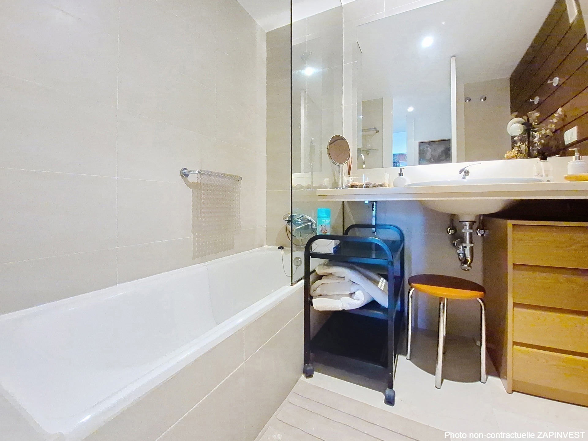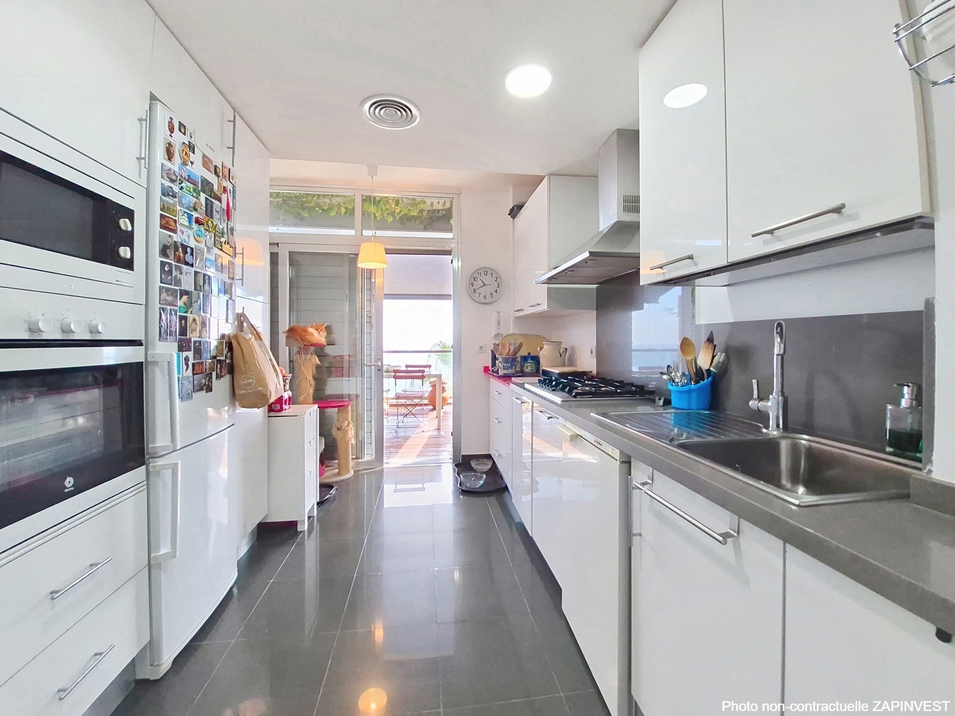 La cuisine est entièrement équipée et malgré sa privacité donne accès sur le salon-salle à manger ainsi que la terrasse.