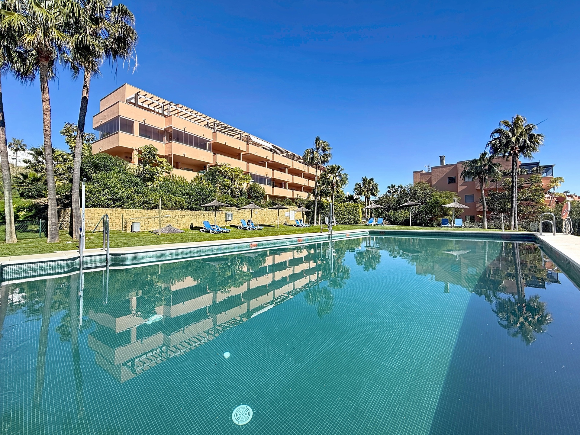 Implanté en pleine nature, le penthouse reste parfaitement connecté : plages, commerces et services à quelques minutes en voiture, sans oublier le port de plaisance de Sotogrande. Estepona se situe à une dizaine de minutes, et Marbella / Puerto Banús à environ 25 minutes.