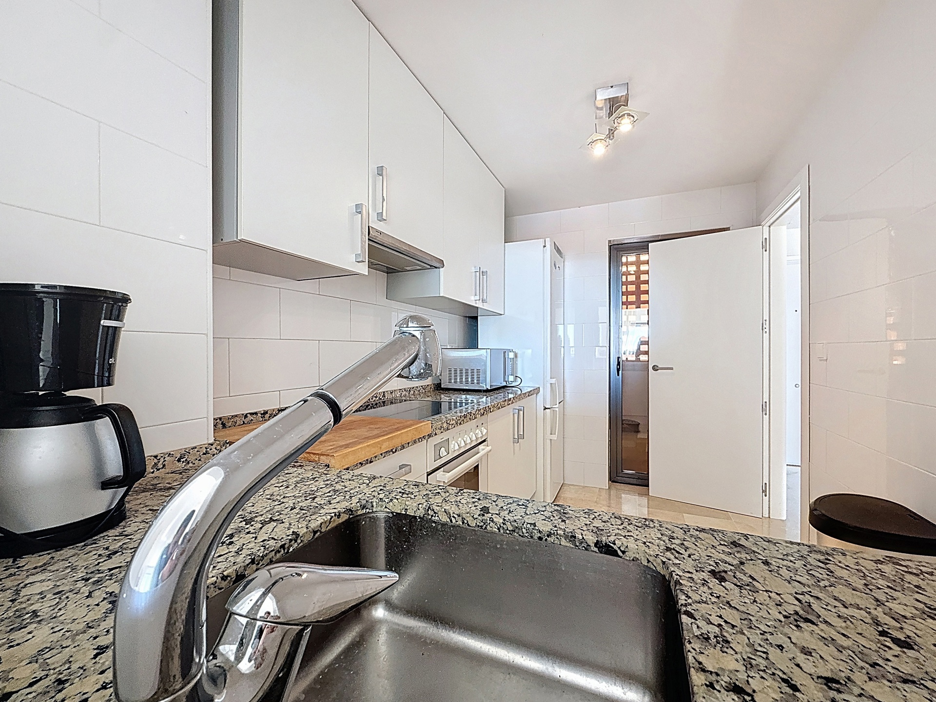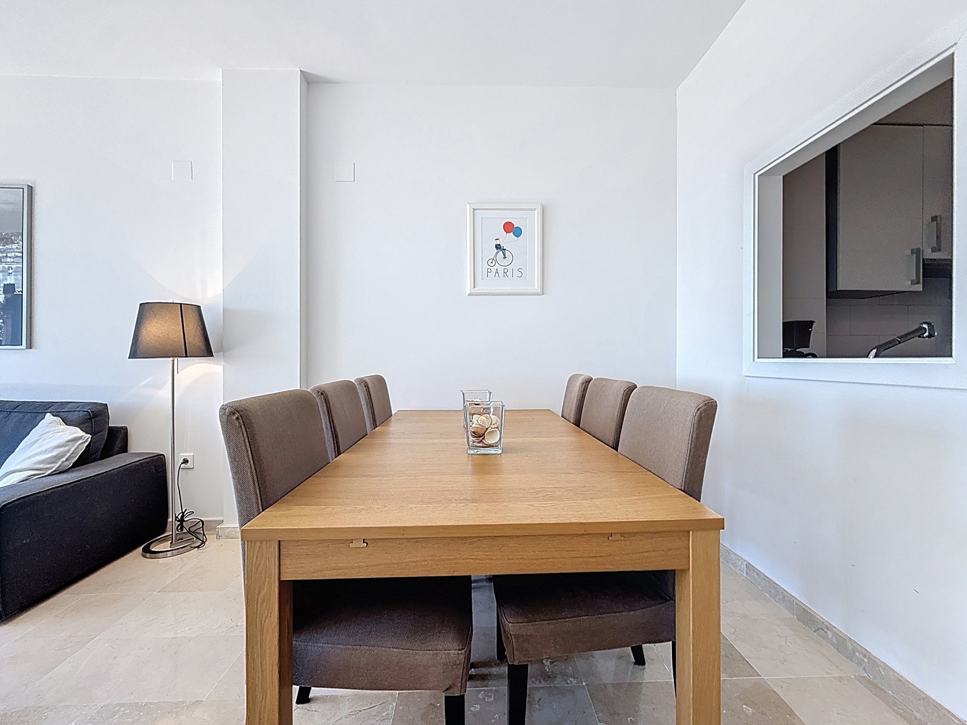 Dès l’entrée, l’appartement propose une distribution fluide : deux grandes chambres et deux salles de bains (dont une en suite), un séjour spacieux et lumineux prolongé par l’extérieur, ainsi qu’une cuisine équipée avec buanderie indépendante. Le bien est vendu entièrement meublé, prêt à être utilisé.