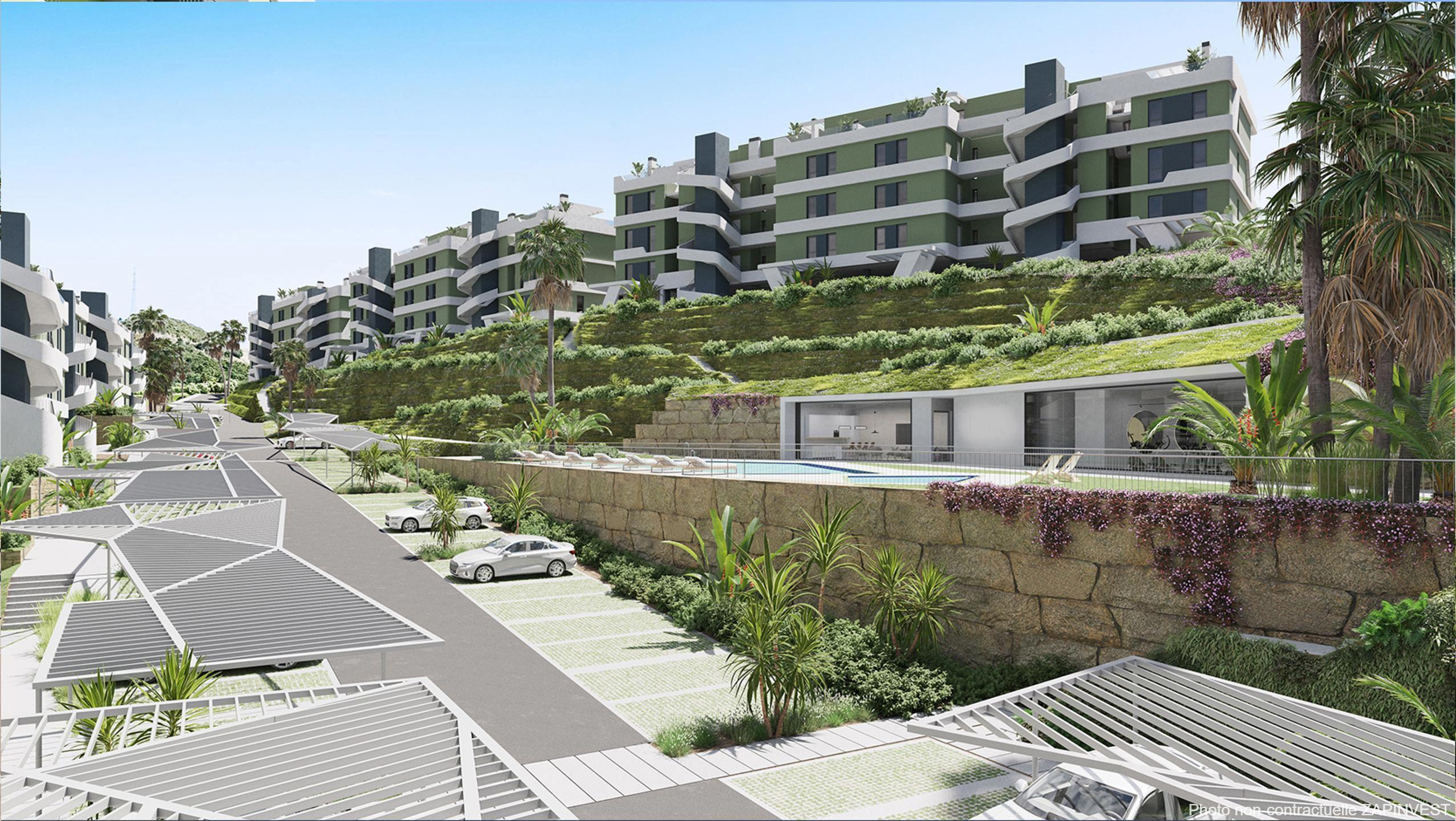 Ce complexe d'une centaine d'appartements de 2 ou 3 chambres s'inspire du luxe d'une résidence tropicale, où l'eau et la végétation sont les caractéristiques principales et où les espaces extérieurs font partie de la vie quotidienne de chaque habitat. Son emplacement privilégié, à Mijas, et ses espaces communs, avec piscine et salle de sport, sont entourés de jardins pour vous permettre de profiter du merveilleux climat et du style de vie de la Costa del Sol. Le design de ce complexe réinterprète le style sophistiqué des stations balnéaires brésiliennes, mais actualisé en un complexe résidentiel d'avant-garde, avec ses lignes pures et son design unique. Les grandes terrasses émergent de sa façade verte caractéristique et forment un cadre architectural qui a un double objectif : donner au complexe son identité et assurer un ensoleillement optimal tout au long de l'année.