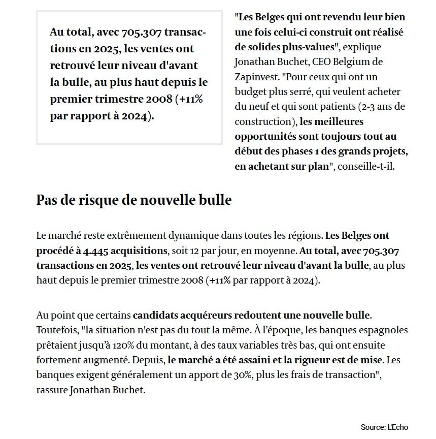 Interrogé dans l’article, Jonathan Buchet souligne que, malgré les volumes de transactions importants, le contexte actuel est très différent de celui de 2007-2008. Les conditions de crédit sont aujourd’hui beaucoup plus strictes et les banques exigent des apports conséquents, ce qui contribue à assainir le marché et à limiter les risques de bulle spéculative.