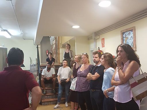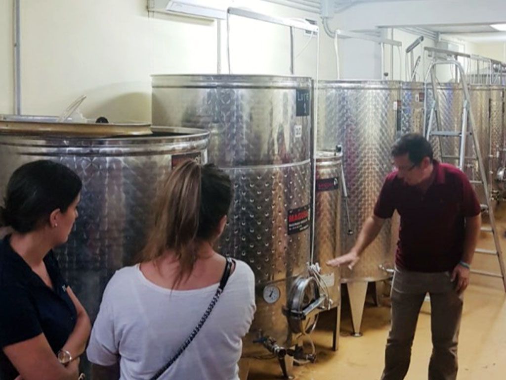 Très attentifs, nous découvrons donc, dans notre habituelle bonne humeur, tous les détails de la production, depuis les vendanges et le pressage jusqu’à la mise en bouteille. À Manilva, les vendanges se font très tôt et, à notre grand bonheur, le vin de l’année est en phase de clarification et de vieillissement dans les grandes cuves en acier inoxydables.