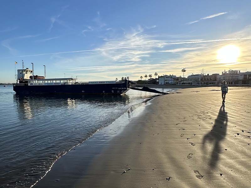 De retour à Sanlúcar, on a décidé de traverser à nouveau le fleuve, mais cette fois sur une petite barge locale, La Olga, qui fait sans cesse l’aller-retour entre les deux rives. Une fois de l’autre côté, nous étions seuls.