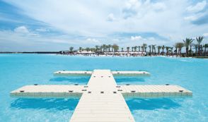Avec plus de 16.000m2 d'eau limpide et de splendides plages de sable blanc, ce lagon, le plus grand d'europe, est la pierre angulaire de ce magnifique lieu de villégiature.