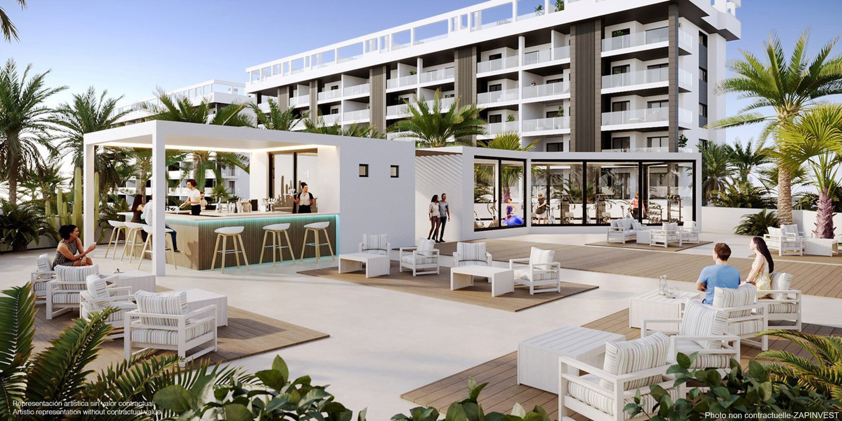 Cette résidence privée entièrement clôturée disposera de grands espaces verts avec des jardins méditerranéens, deux piscines pour adultes, un bar de plage à côté de la zone estivale, un jacuzzi, une salle de gymnastique couverte entre les deux piscines, une zone pour les enfants et un club social de 400 m.