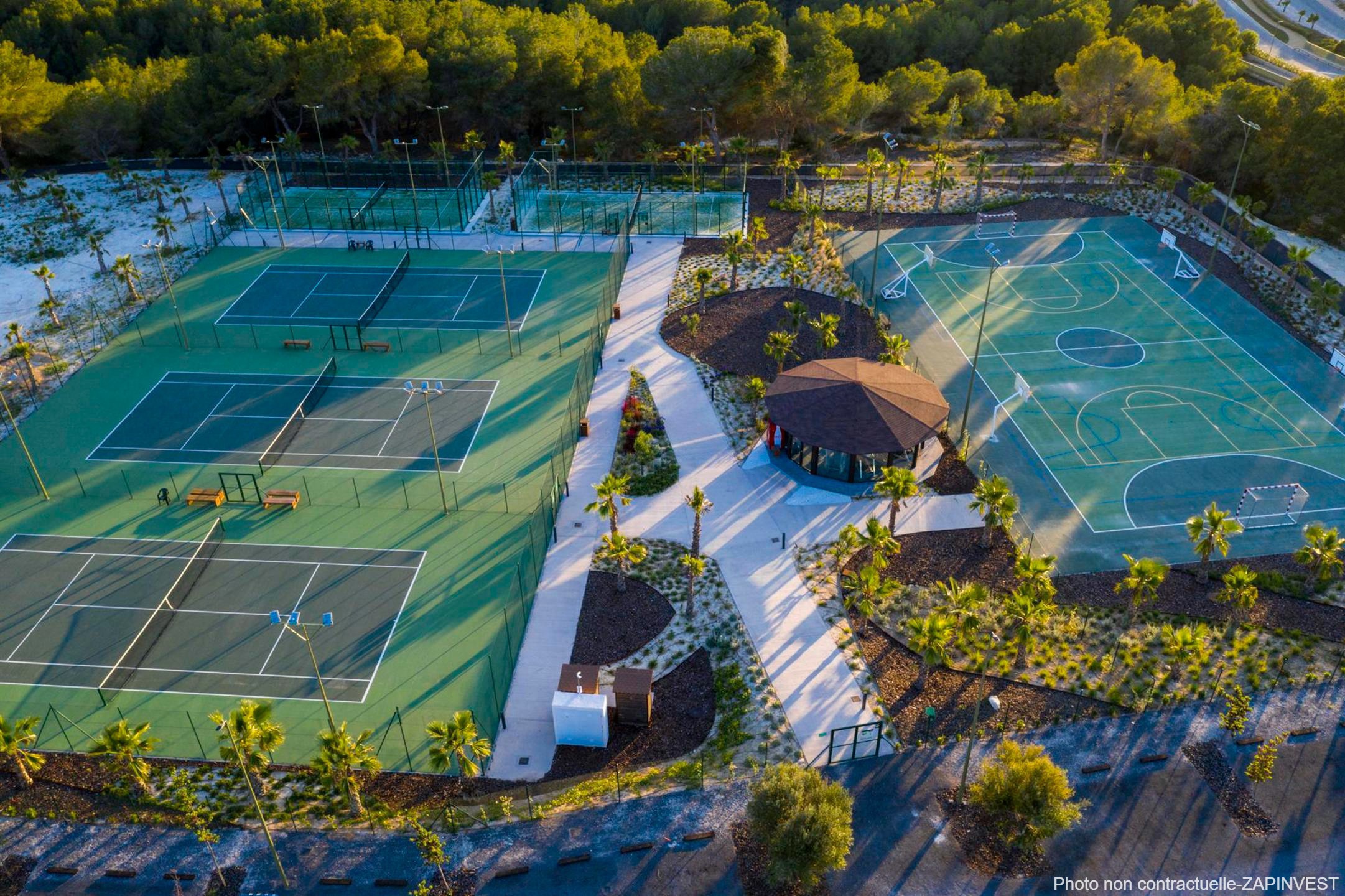Le CLUB SPORTIF ET DE SANTÉ avec gymnase, tennis et courts de paddle, piscine et espace bien-être.