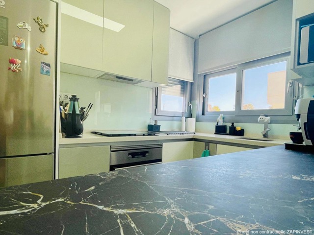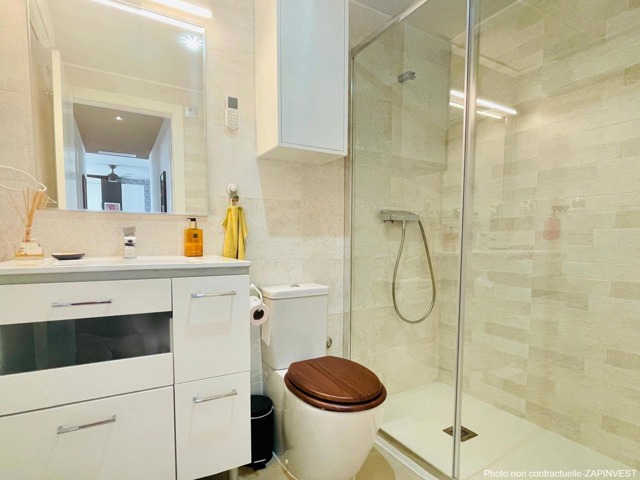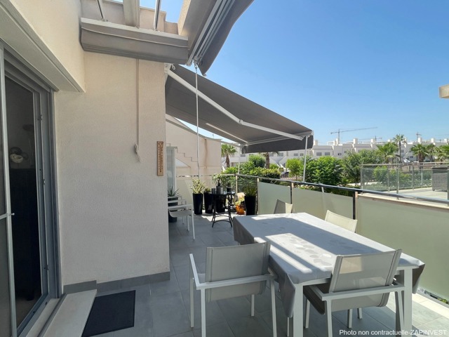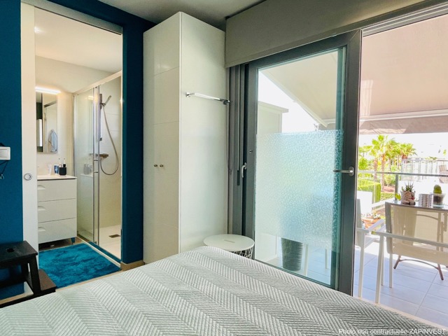 L’appartement est très spacieux et est vendu avec beaucoup d’’extras tel que la climatisation avec air zone dans les chambres, ventilateurs de plafond , moustiquaires et tentes solaires sur les terrasses afin de profiter de la brise. Le bel espace de vie comprend un salon salle à manger et une magnifique cuisine américaine. Cet appartement dispose de 3 chambres dont une en "suite" avec sa propre salle de bain et une deuxième salle de bain accessible depuis le hall de nuit.