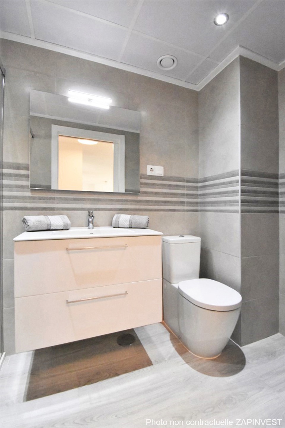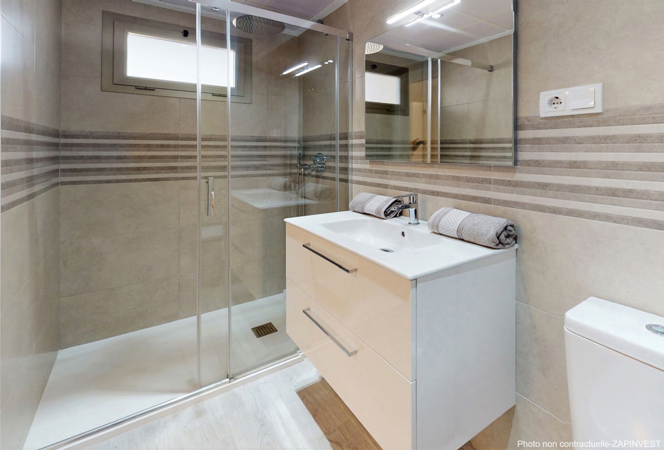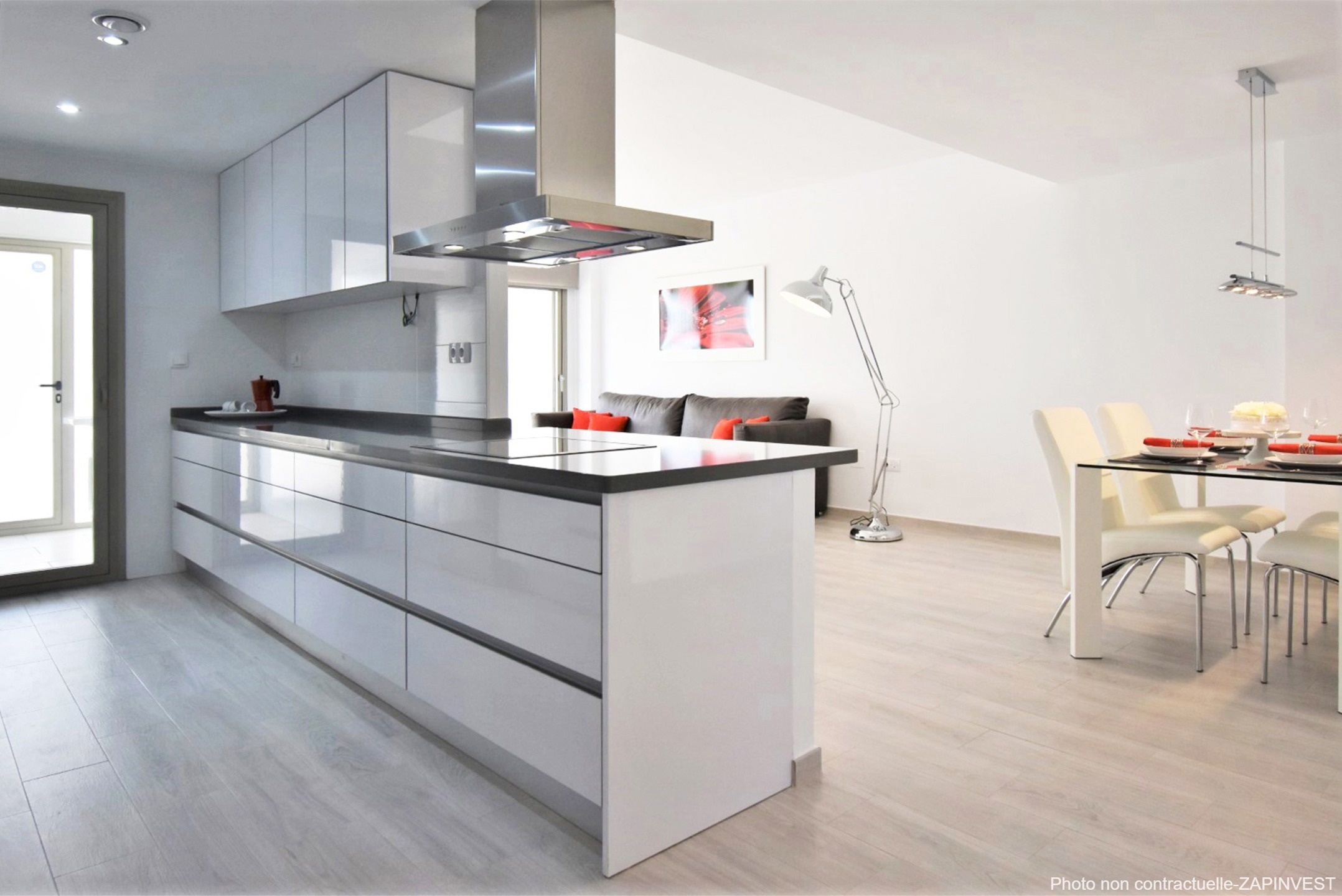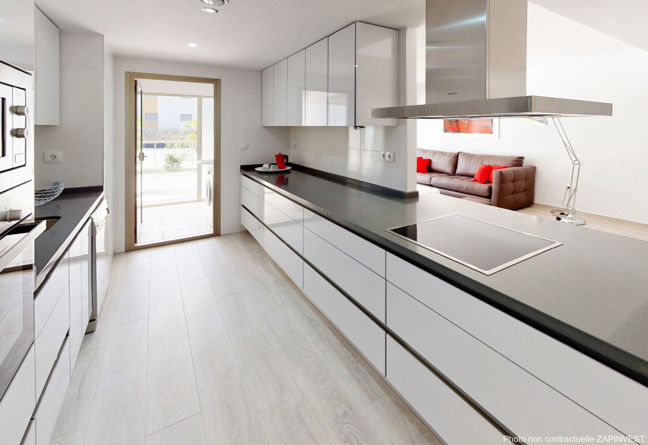 L’appartement est vendu avec la cuisine entièrement équipée en électroménagers, la climatisation centralisée ainsi qu’une place de parking et une cave en sous-sol.