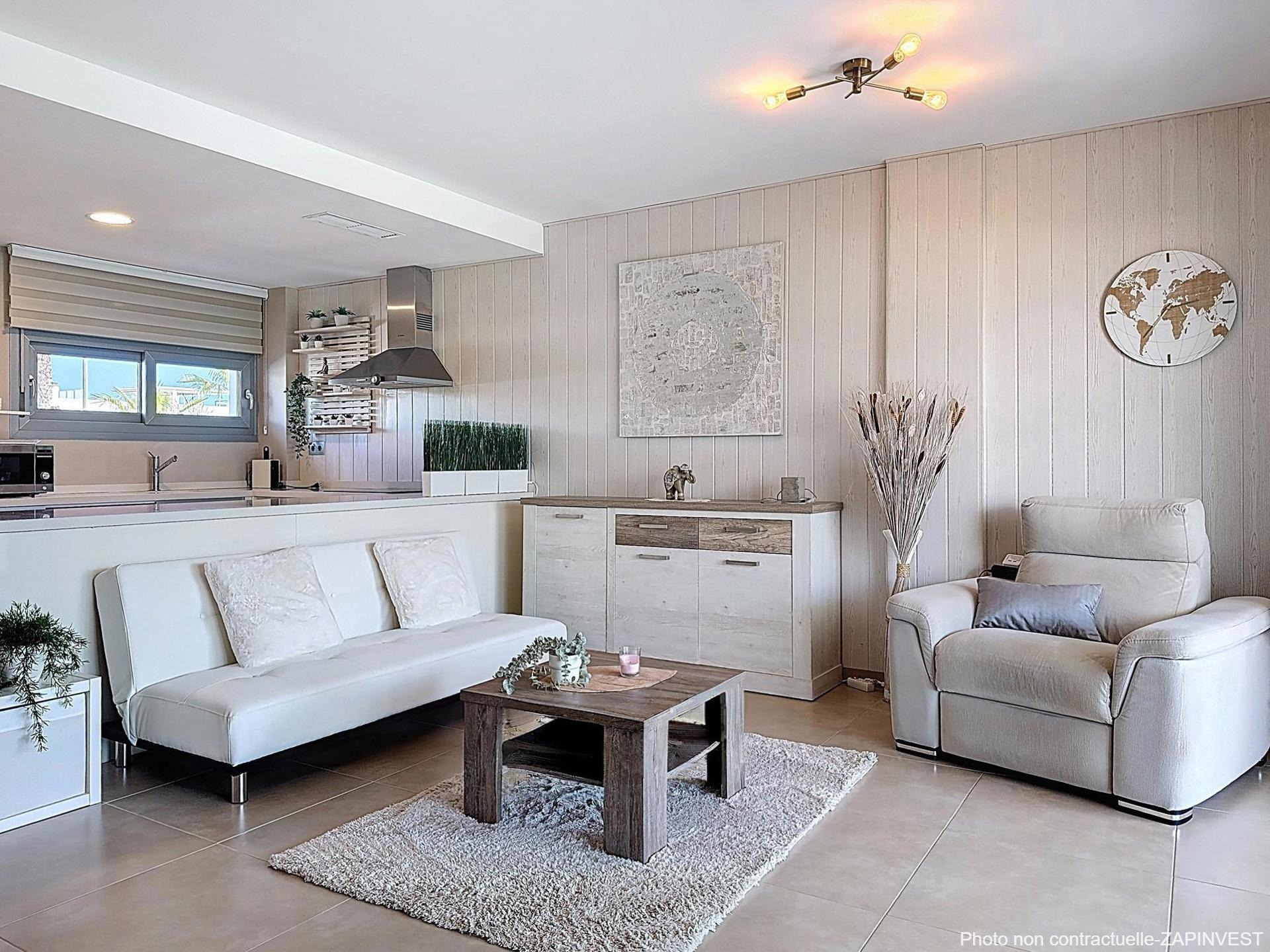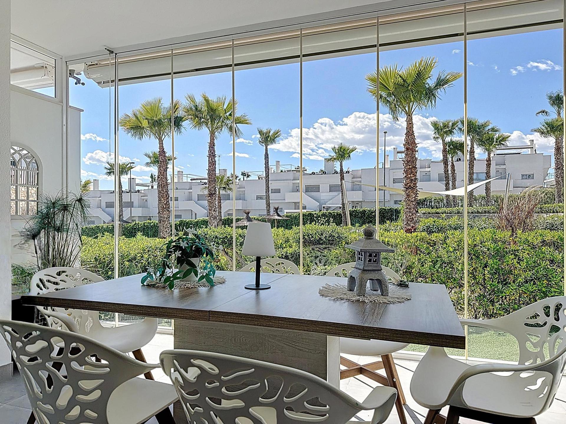 Magnifique appartement de 2 chambres et 2 salles de bain, dont une en "suite”, en rez-de-chaussée avec 2 espaces extérieurs de vie afin de profiter du climat da la Costa Blanca tout au long de l’année.