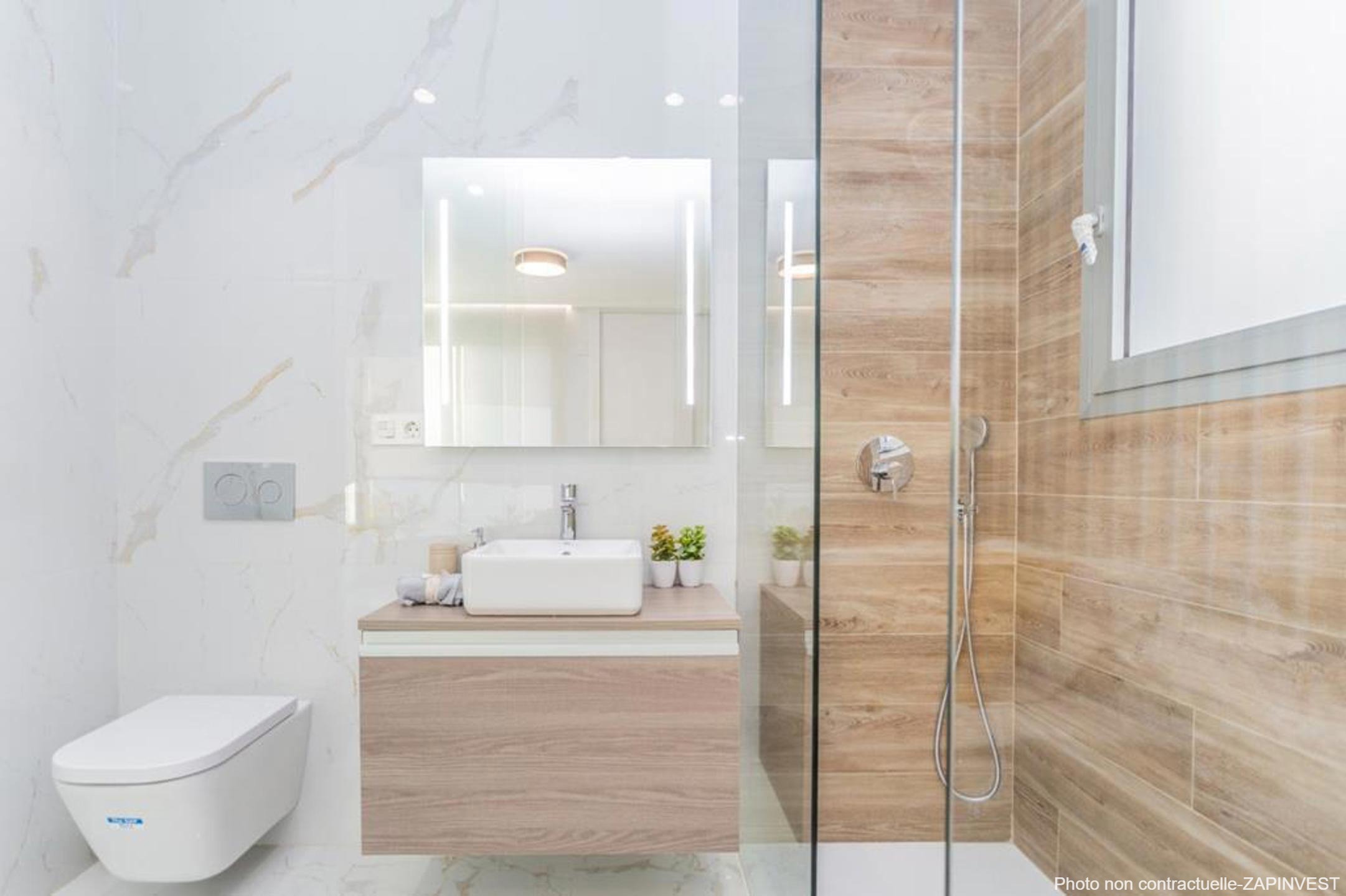 Ce projet dispose de salles de bains avec chauffage au sol et luminaires intérieurs et extérieur inlus.