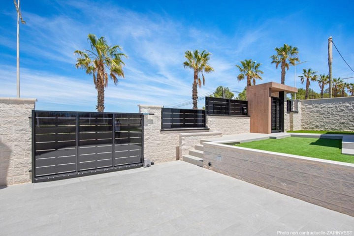 La villa est vendue super équipée, avec une cuisine ouverte incluant tous les électros, des salles de bain complètement équipées, une climatisation (chaud-froid) intégrée complète, un boiler pompe à chaleur, le jardin entièrement aménagé avec palmier et une terrasse solarium sur le toit.