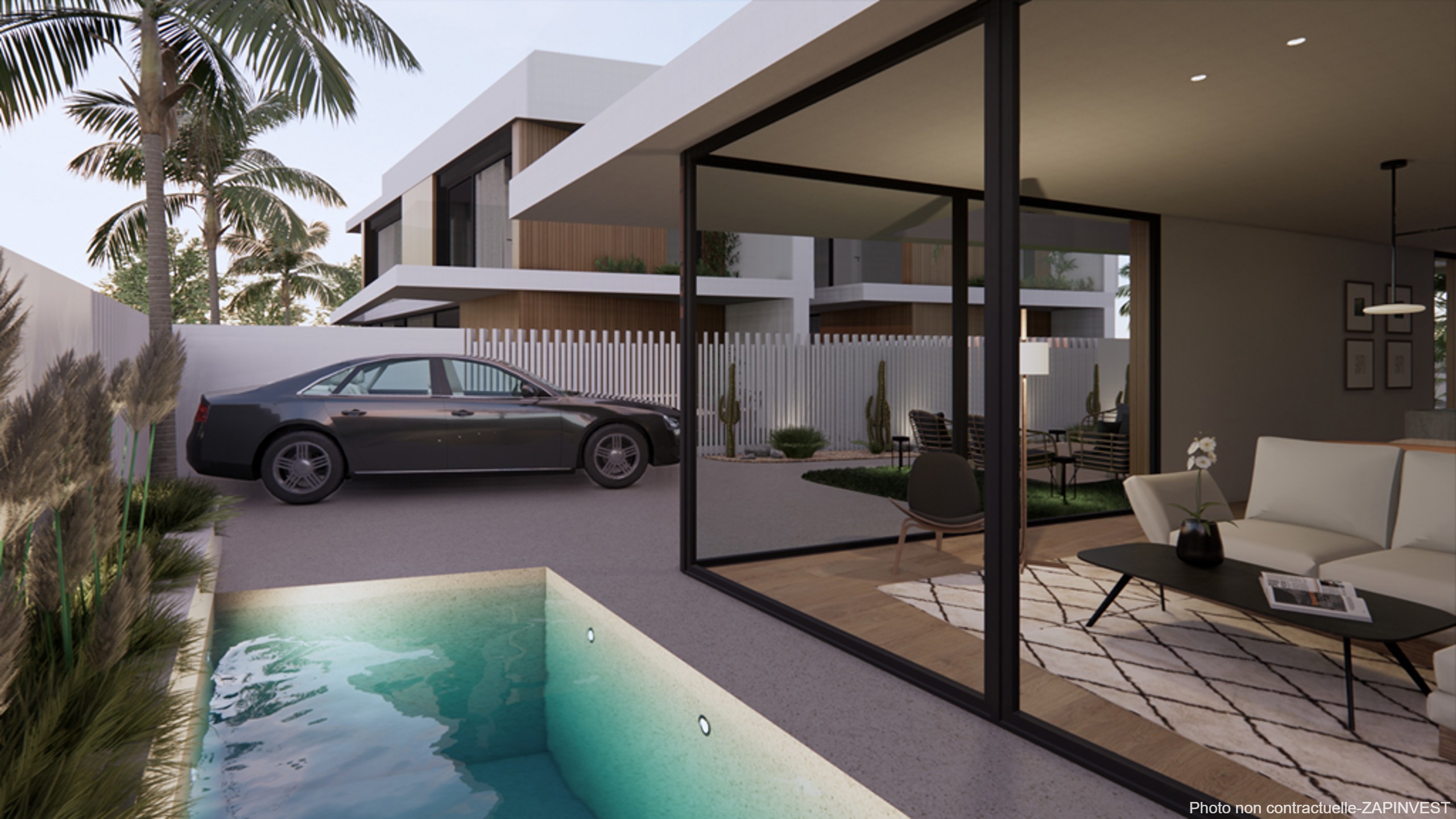 Elle dispose de 3 chambres et 3 salles de bain avec de grands espaces lumineux grâce aux grandes baies vitrées.