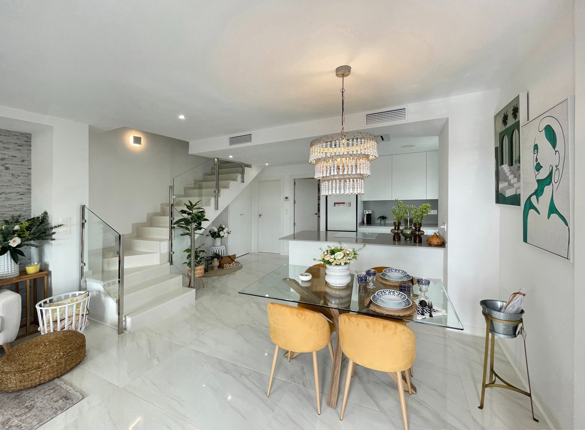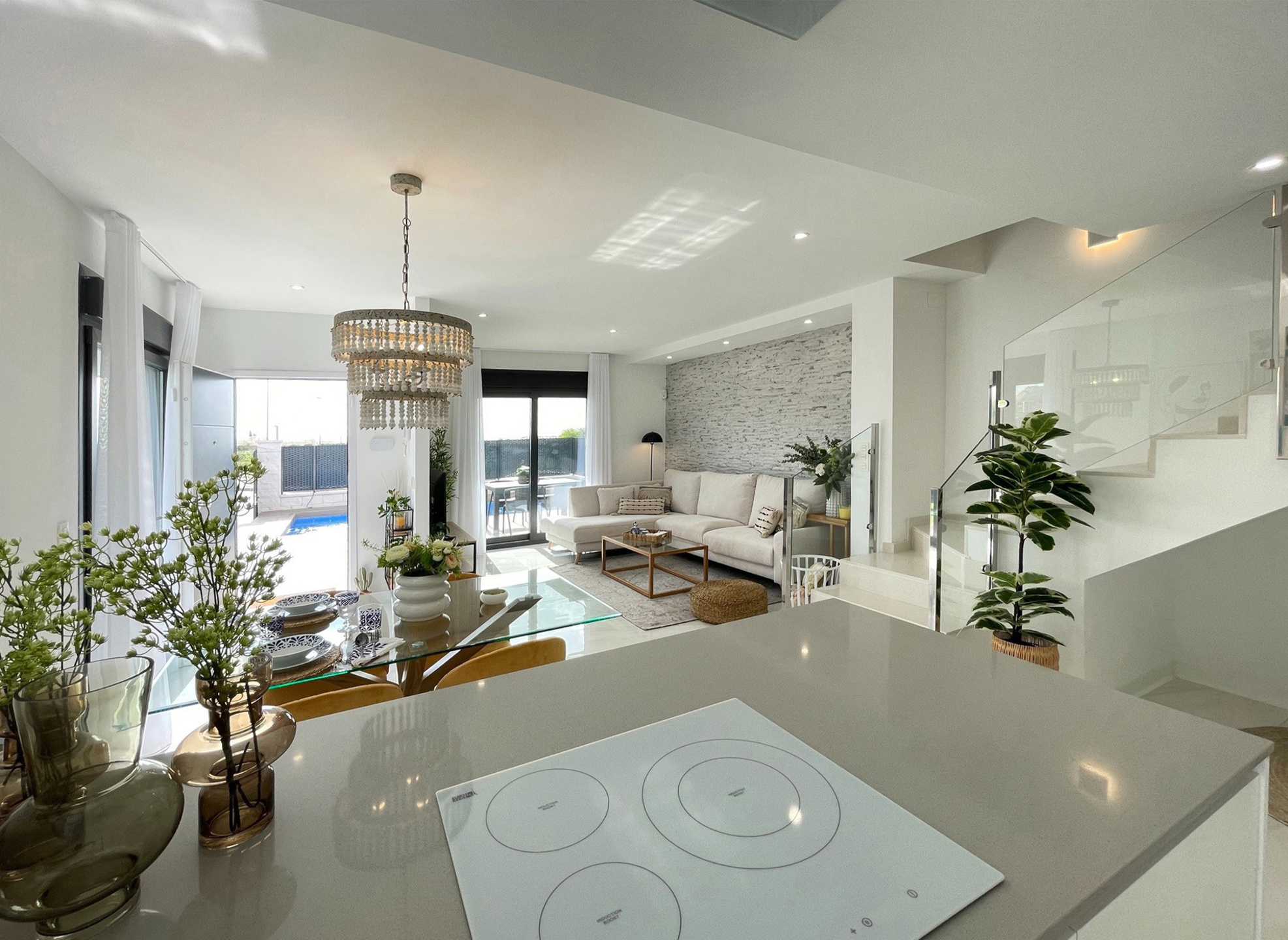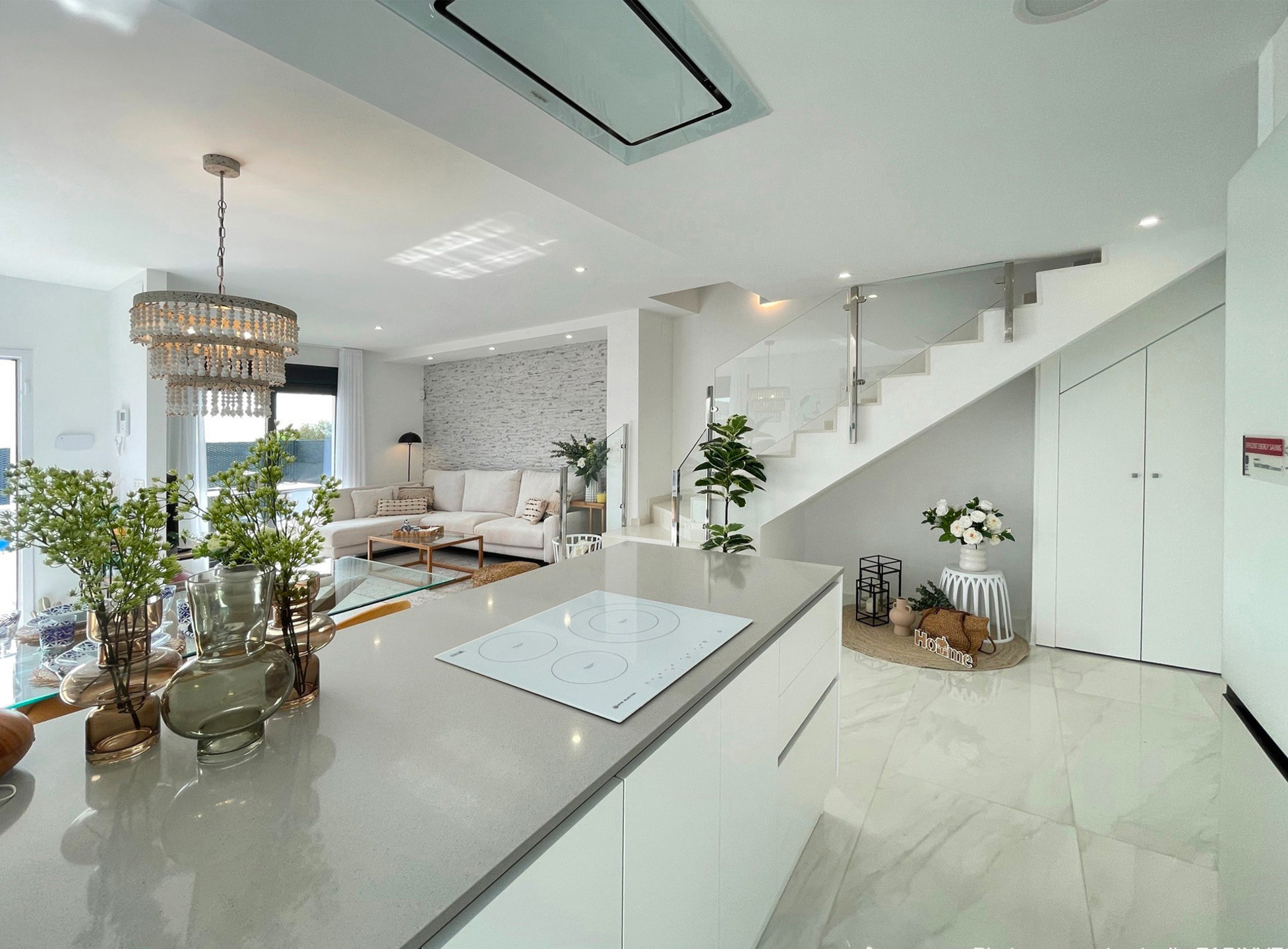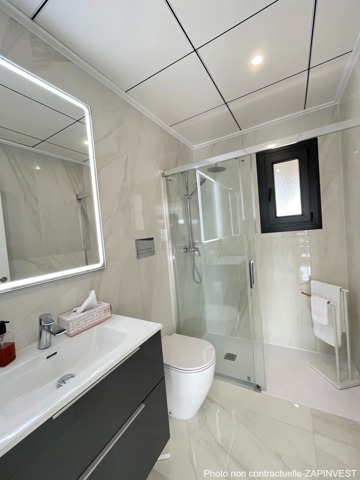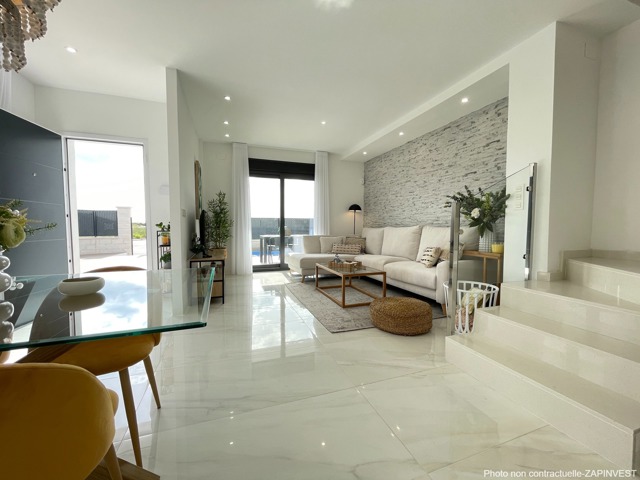 La villa dispose de 3 chambres et de 3 salles de bain ainsi qu'un bel espace de vie avec un grand salon lumineux et une cuisine américaine (tous les électros-ménagers sont inclus dans le prix).