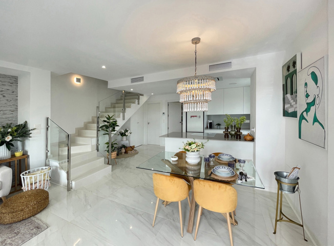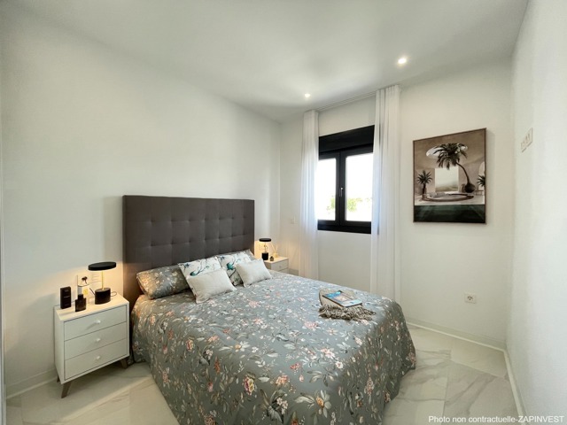 Cet agréable urbanisation est sutuée sur un golf à San Miguel de Salinas, entouré d´orangers et de citronniers, au centre de laquelle vous pourrez profiter d'un supermarché, de plusieurs restaurants et bars, ainsi que quelques magasins et infrastrucures sportives (paddel tennis,...). L'urbanisation est située à quelques seulement minutes des plages de Torrevieja et de Mil Palmeras. Également à courte distance en voiture de l'autoroute avec un accès facile à l'aeroport.