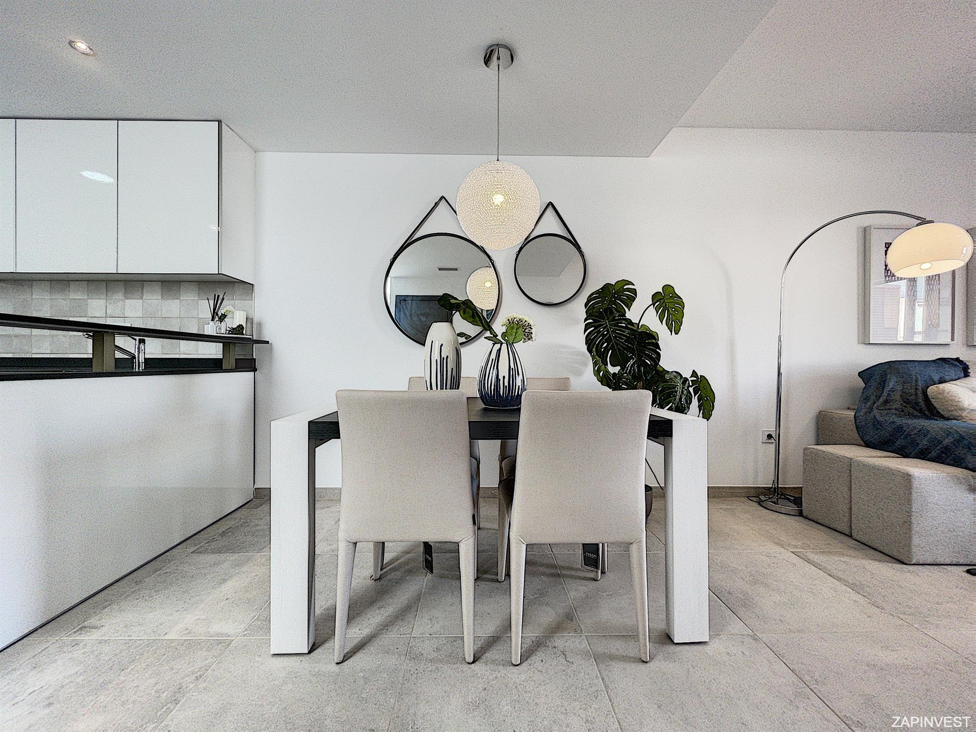 Cet appartement bungalow en rez-de-chaussée de style Andalou dispose de 2 chambres et 2 salles de bains, ainsi que d´une belle cuisine américaine.