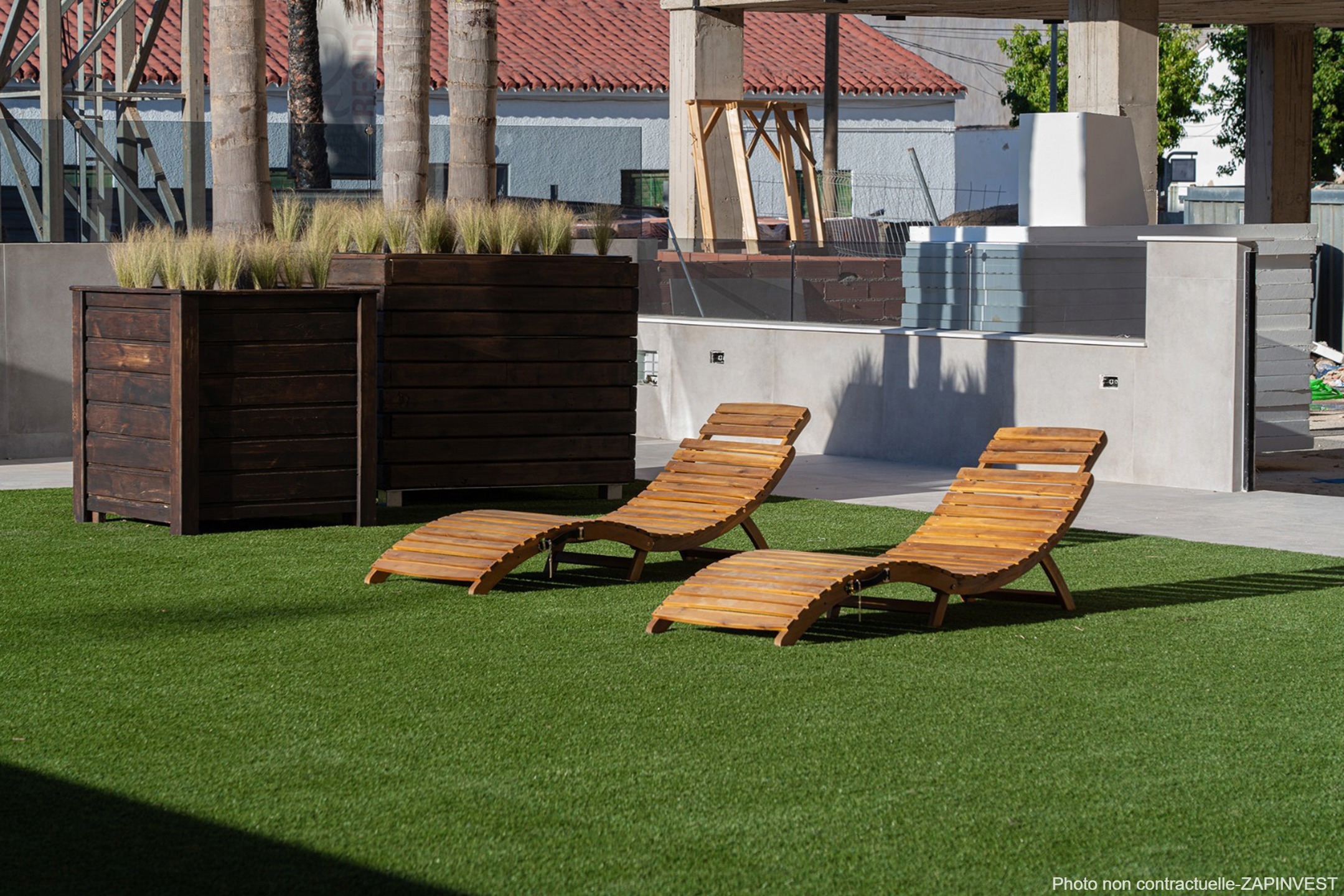 L´espace communautaire comprend une piscine chauffée par des panneaux solaires avec jacuzzi et zone de détente entourés de végétation.