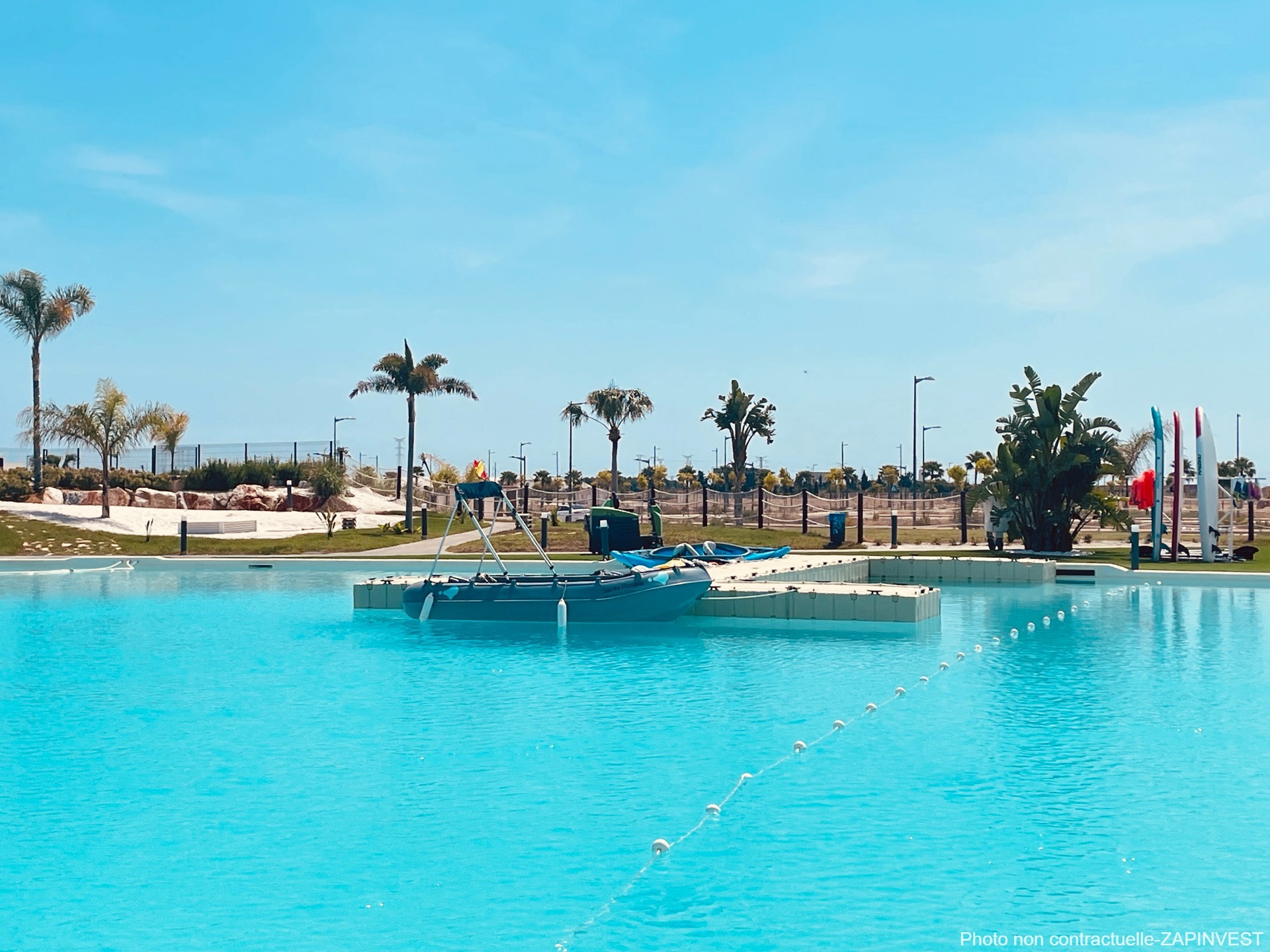 Le magnifique Lac aux eau turquoises, le plus grand d'Europe, se situe au centre d'un resort de 700.000m² à seulement 4km de la mer qui fournira une quantité incroyable de possiblités d'activité de vie, de détente et de sport : activité nautiques, plages de sable blancs, iles, beach club, restaurant... de quoi ravir toute la famille, quelle que soit la période de l'année. En plus d'être une zone extrêment agréable à vivre, elle promet également, pour ceux qui souhaiteraient louer leur bien, des perspectives de rentabilités exceptionnelles, tout au long de l'année.