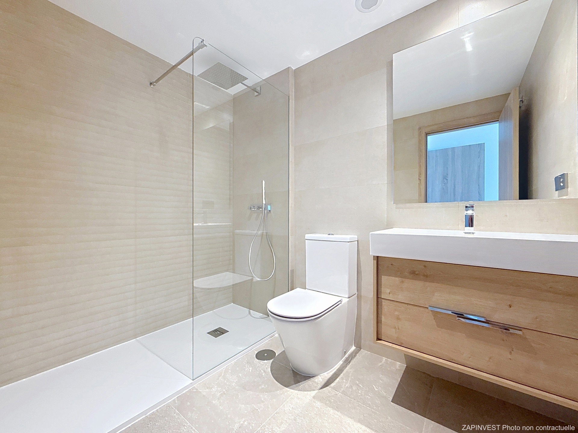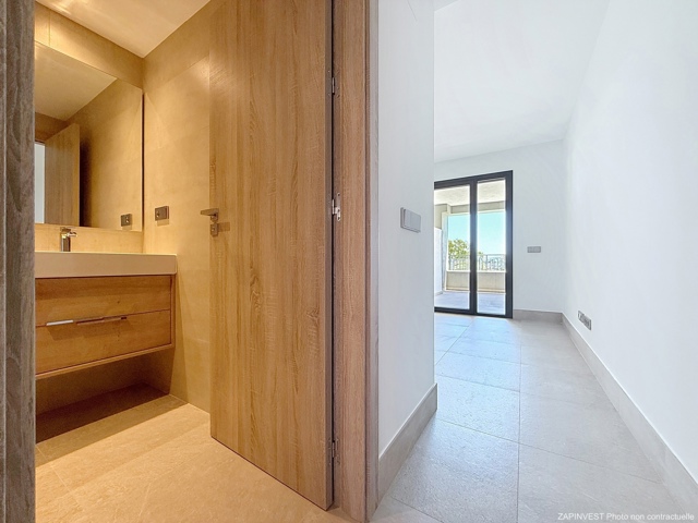 L'appartement bénéficie d'une cuisine équipée avec des électroménagers de qualité. Les salles de bains ont été décorées et meublées dans des tons neutres et relaxants tout en offrant la simplicité du luxe épuré.