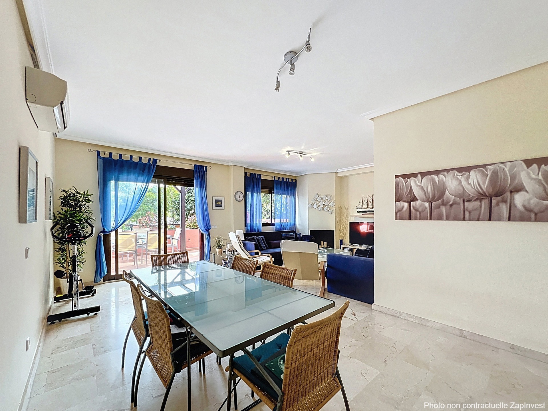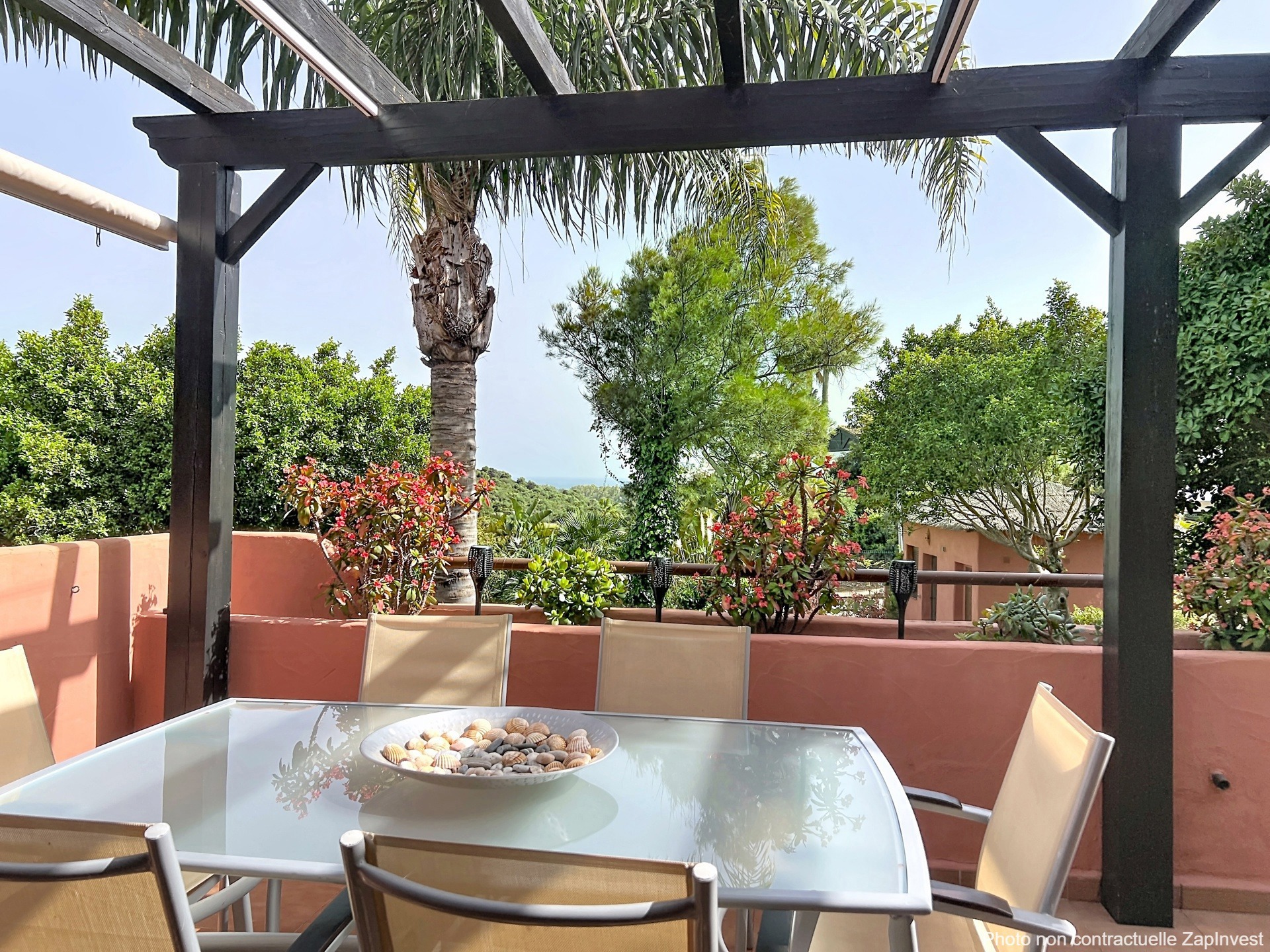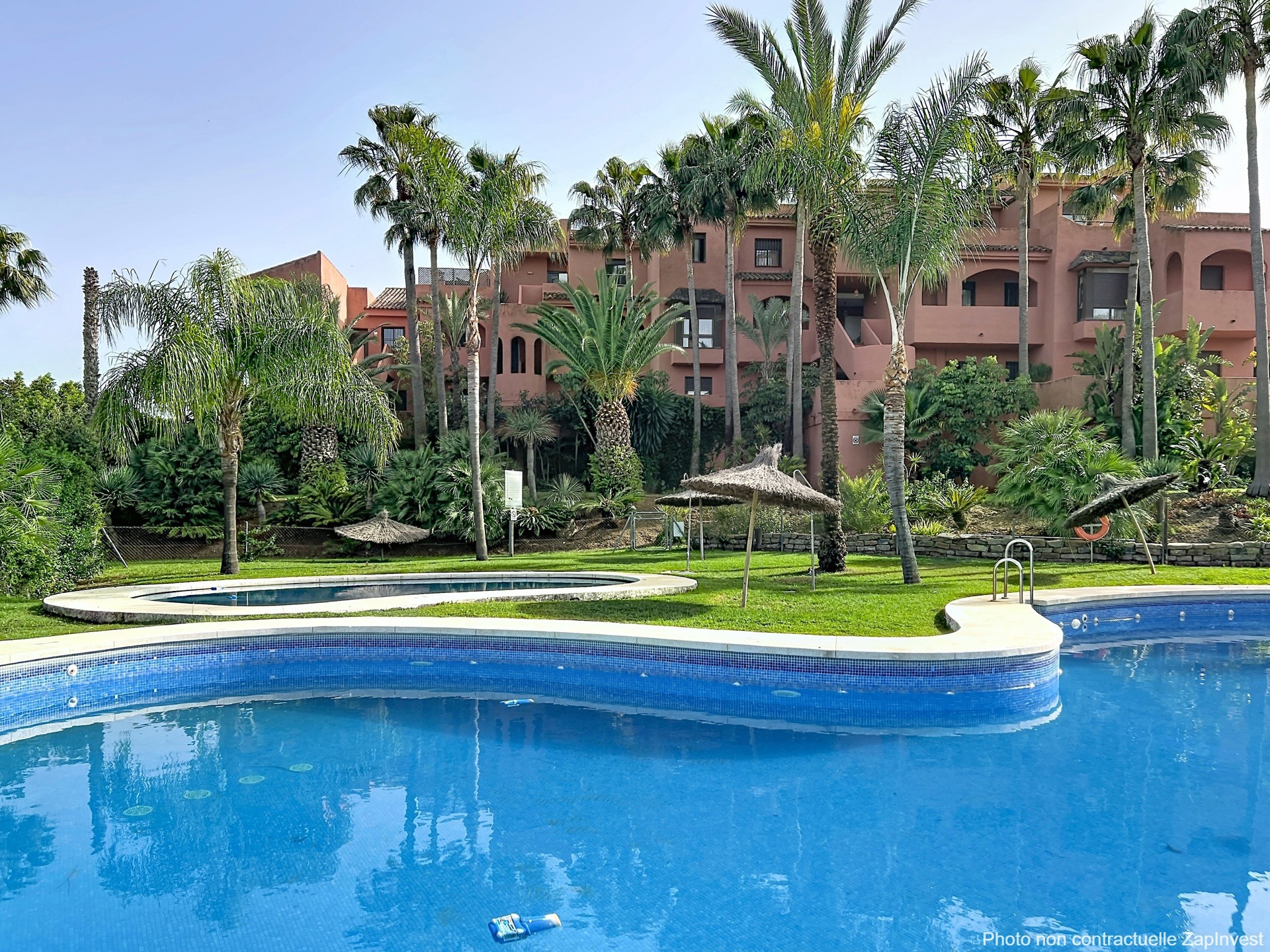 La résidence propose de magnifiques jardins tropicaux, un bassin où vivent poissons et tortues, une grande piscine, une pataugeoire ainsi qu’un terrain de tennis-padel — un cadre parfait pour des vacances de rêve ou pour s’installer à l’année sous le soleil andalou.