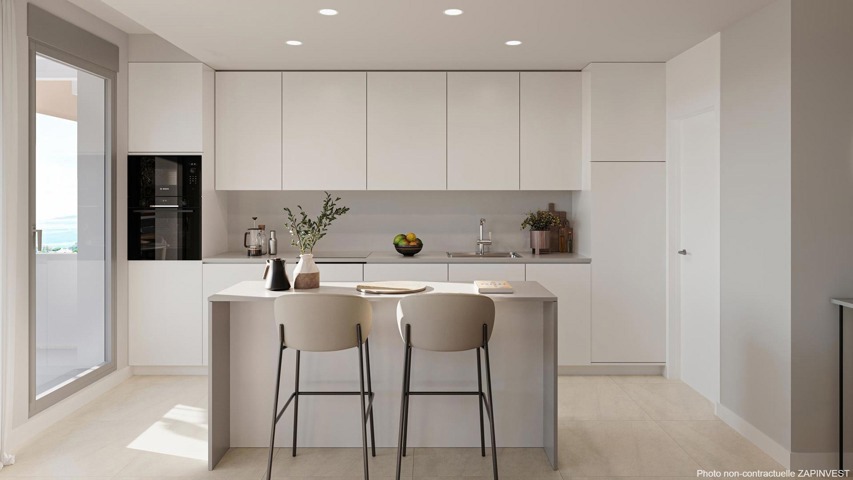 Tous les biens sont vendus avec une cuisine complètement équipée, sol chauffant dans tout le bien, une place de parking et une cave en sous-terrain !