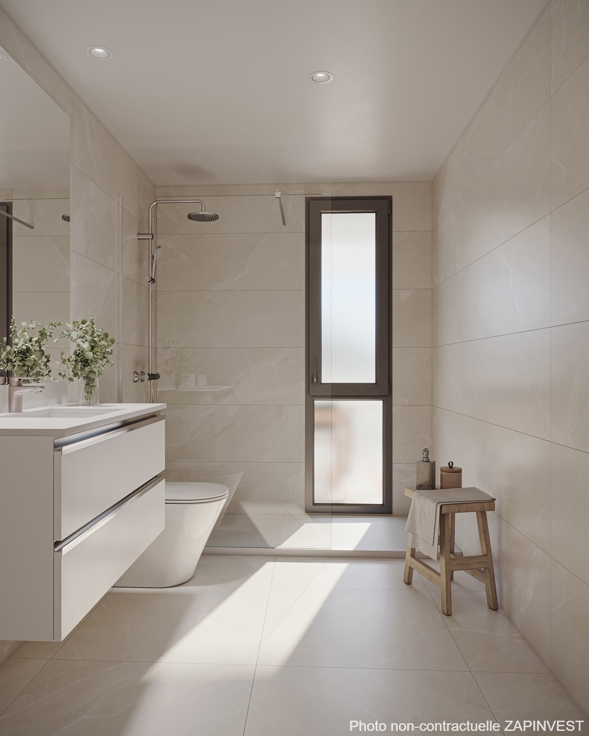 Dès l'entrée, vous avez immédiatement à main droite à la chambre parentale avec sa salle de bains et son dressing en suite qui donne sur la magnifique terrasse.