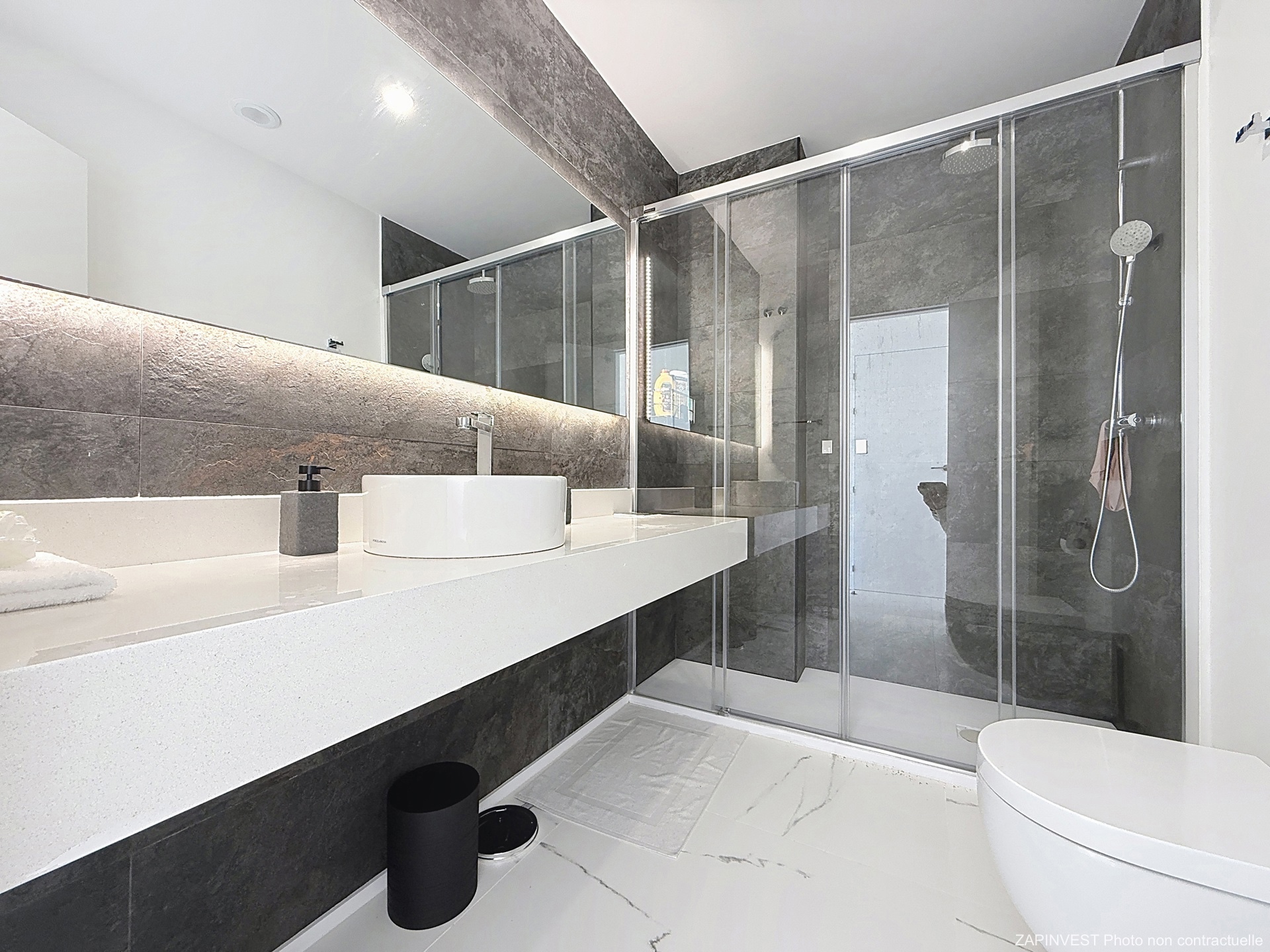 Implanté au sein d’une petite urbanisation contemporaine au design moderne, cet appartement de 2 chambres et 2 salles de bain en suite offre un cadre de vie privilégié, entre confort, intimité et panorama mer à couper le souffle. Situé sur une légère colline, il bénéficie d’une position dominante qui maximise les vues tout en restant à seulement 800 mètres de la plage.
