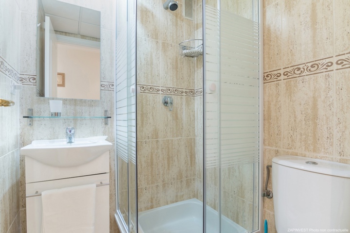 L’appartement, situé au cinquième étage, se compose de deux chambres et deux salles de bains. Sa terrasse orientée plein sud bénéficie d’une vue imprenable sur la mer, l’une des piscines et les jardins paysagers. Il dispose également d’une cuisine entièrement équipée et entièrement rénovée, d’un système de climatisation réversible, d’une place de stationnement en sous-sol et il est vendu meublé.