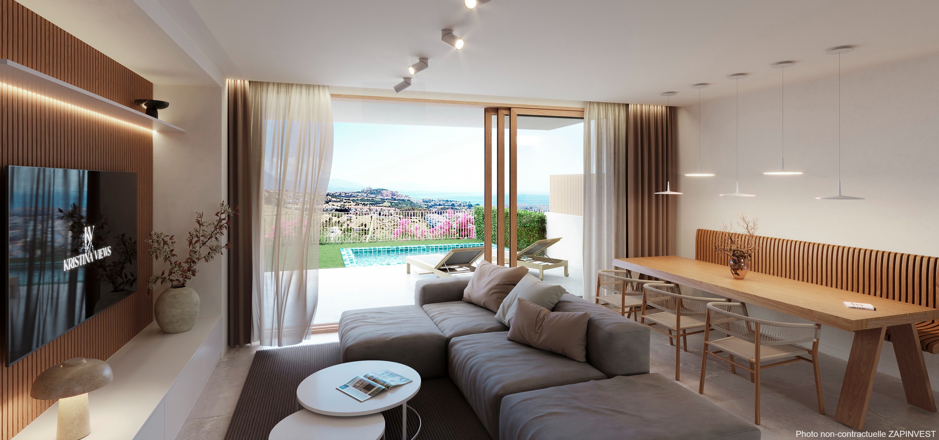 Les maisons d'angle offrent un luxe supplémentaire : une quatrième chambre avec salle de bains au rez-de-chaussée et une terrasse sur le toit avec une vue spectaculaire. Certaines maisons disposent d'un jardin privé avec possibilité d'installer une piscine, d'autres d'une terrasse spacieuse avec vue sur la vallée.