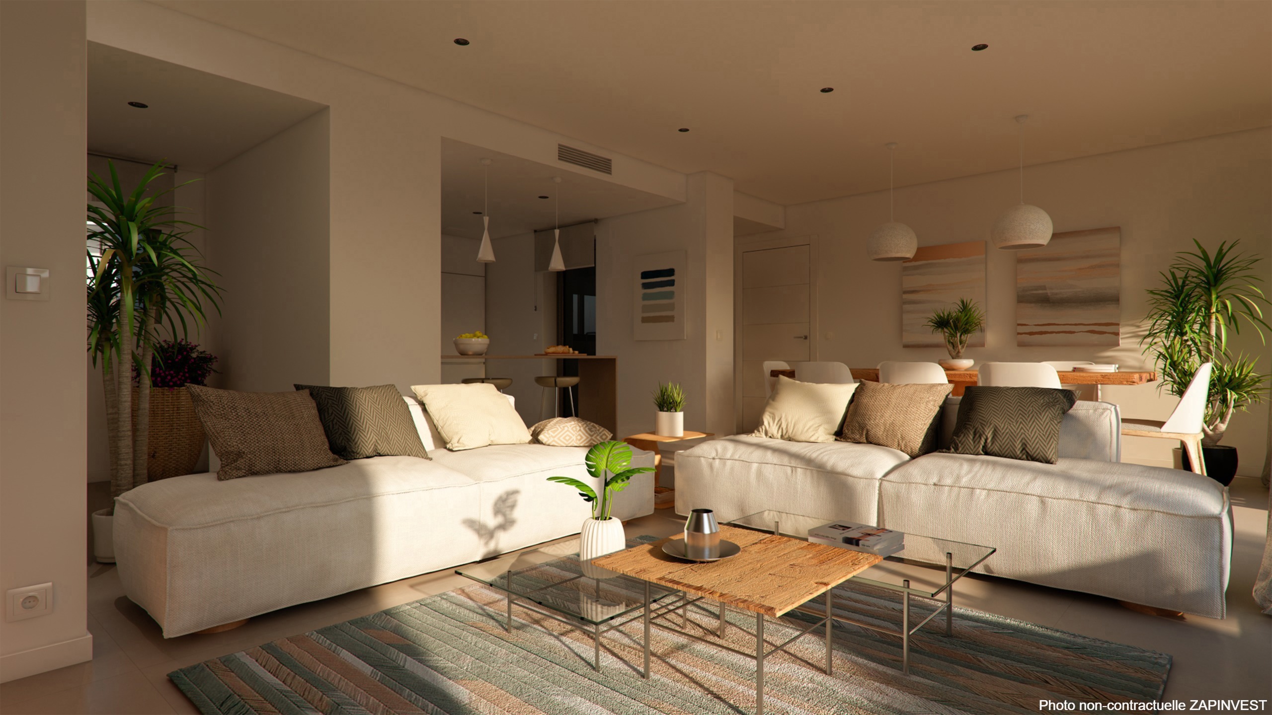 Le complexe résidentiel dispose d'une piscine chauffée et de deux impressionnantes piscines design avec éclairage nocturne. Cette zone est entourée de vastes espaces aménagés en jardin.