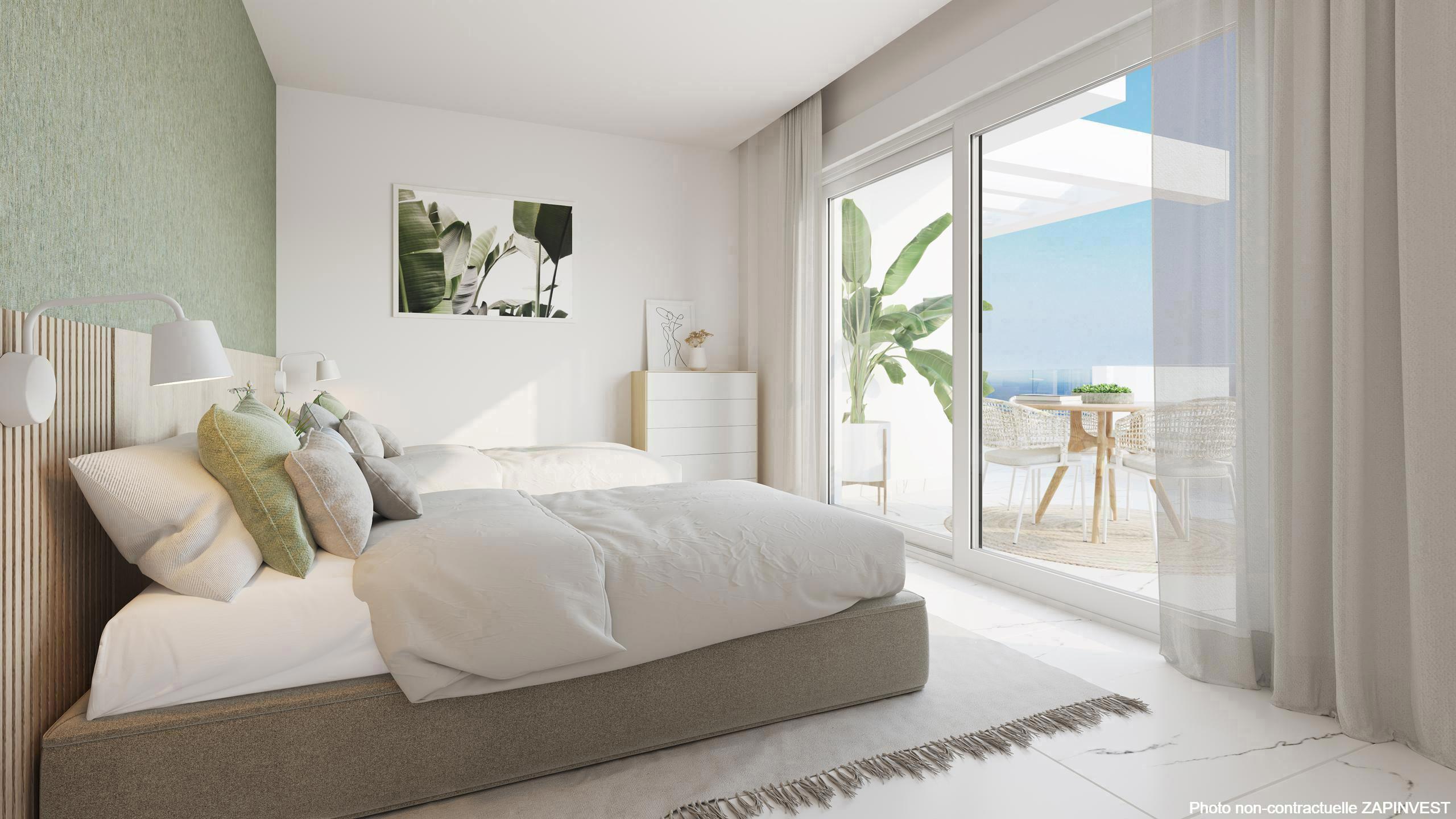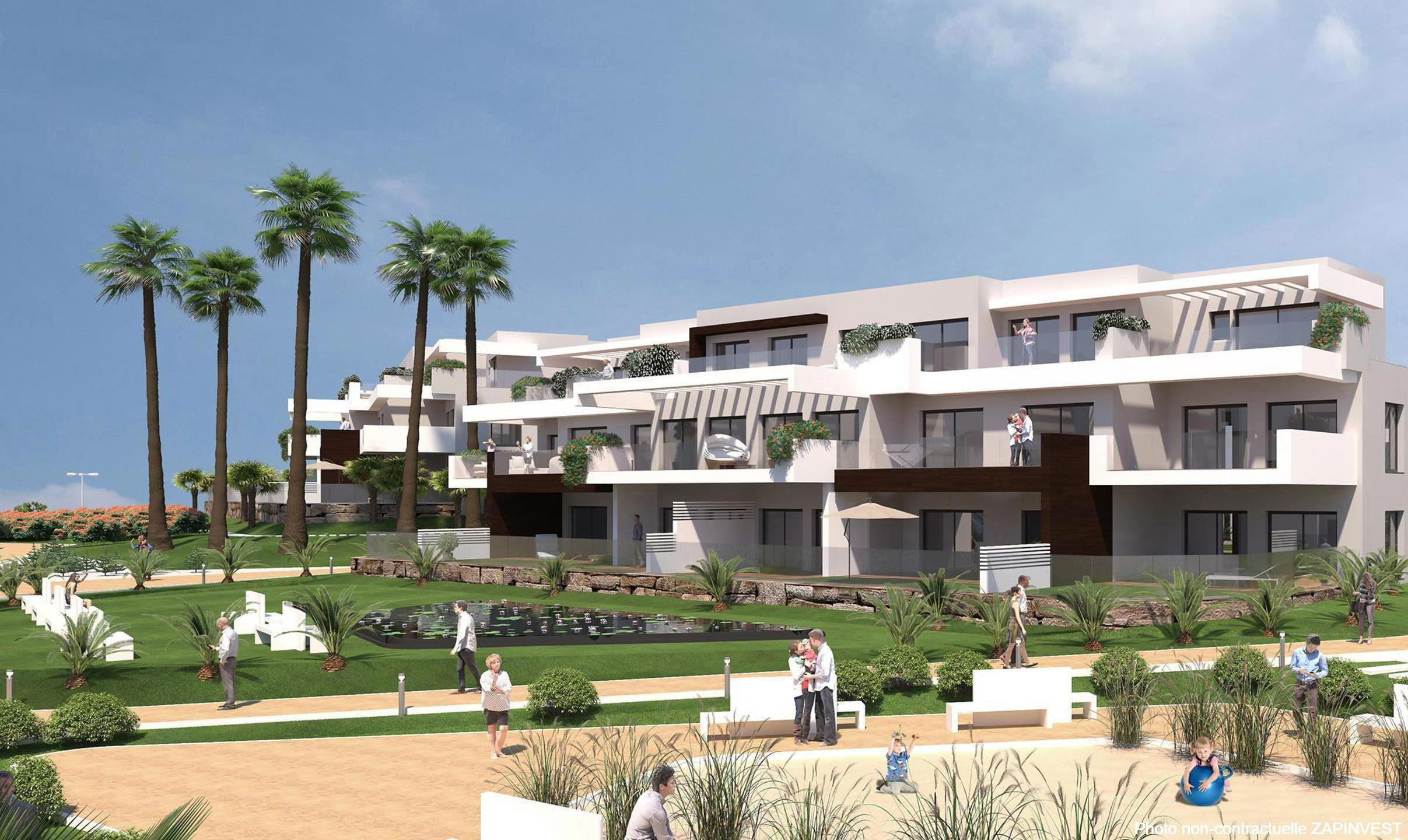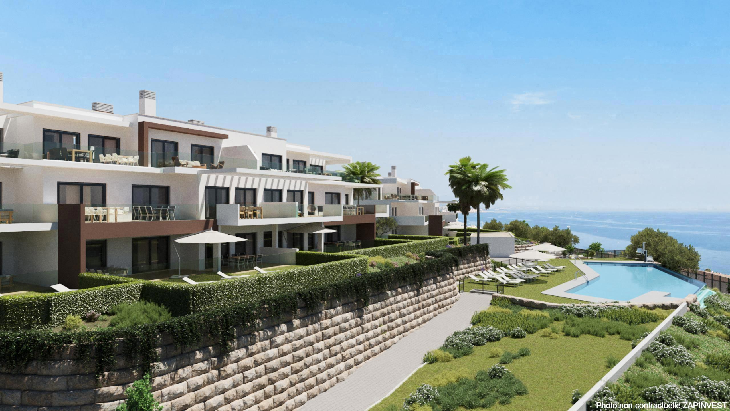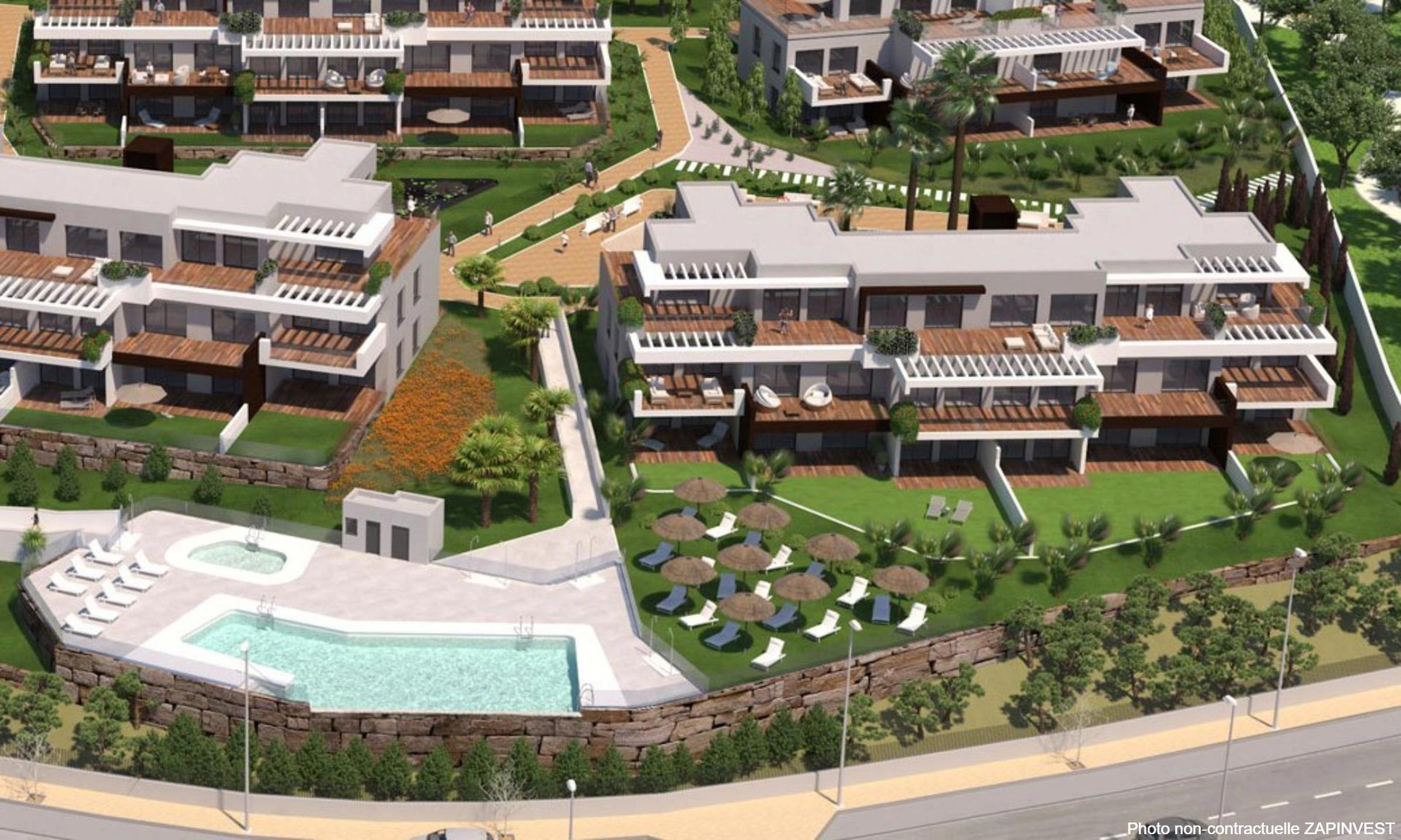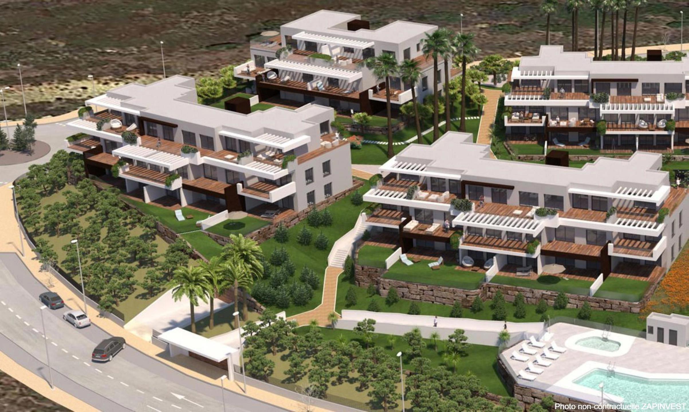 Nouveau projet sur plan, de seulement 74 appartements de 2 et 3 chambres distribué en 7 blocs distribué sur deux étages avec un design contemporain, idéalement situé sur une petite colline, à 800 mètres de la plage, avec des vues 360º sur la mer pour la plupart des appartements.
