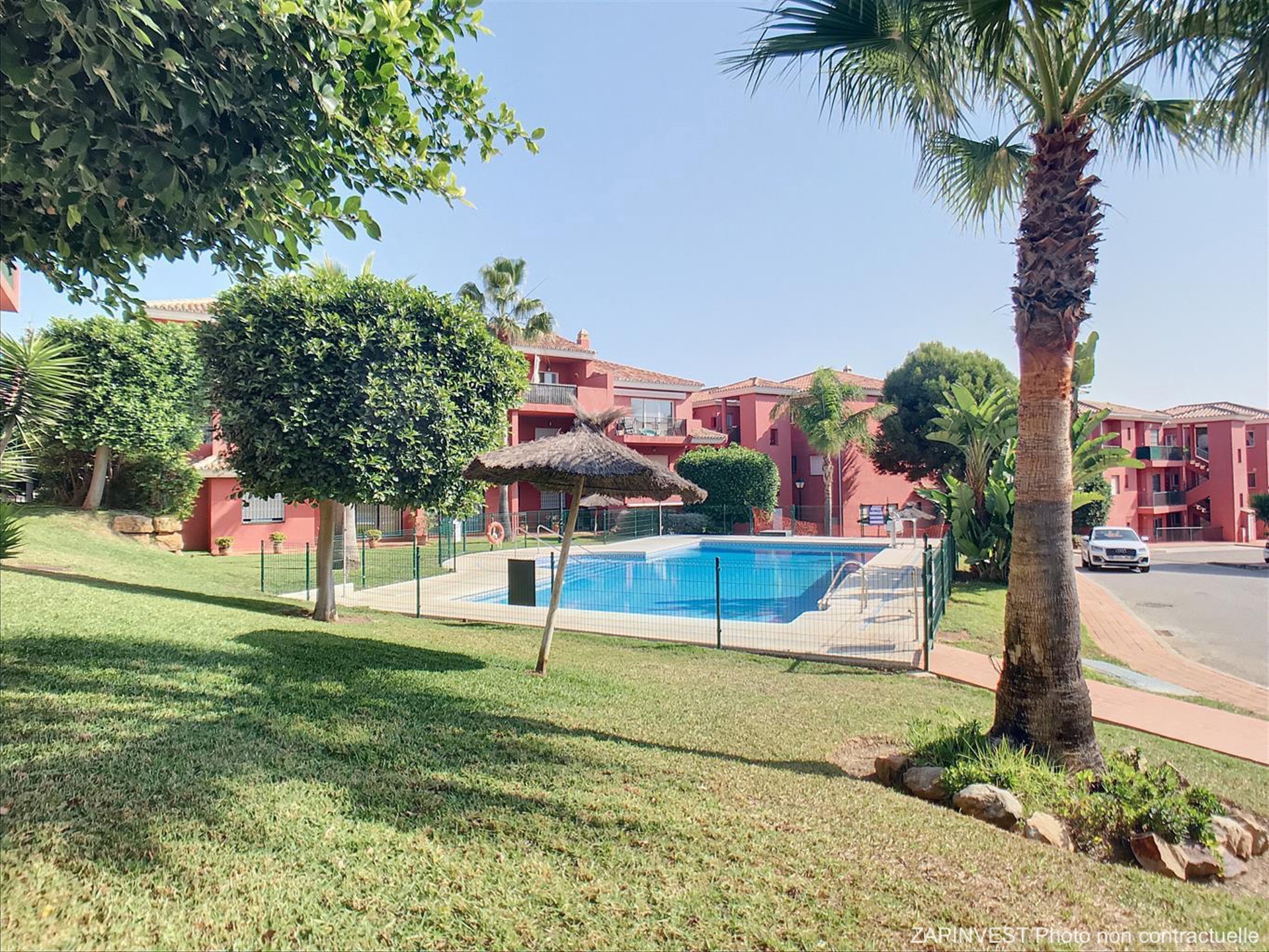 La terrasse, orientée vers les jardins et la piscine commune, dispose de belle vue dégagée. Un véritable atout pour profiter pleinement du climat ensoleillé de la Costa del Sol et adopter le style de vie méditerranéen.