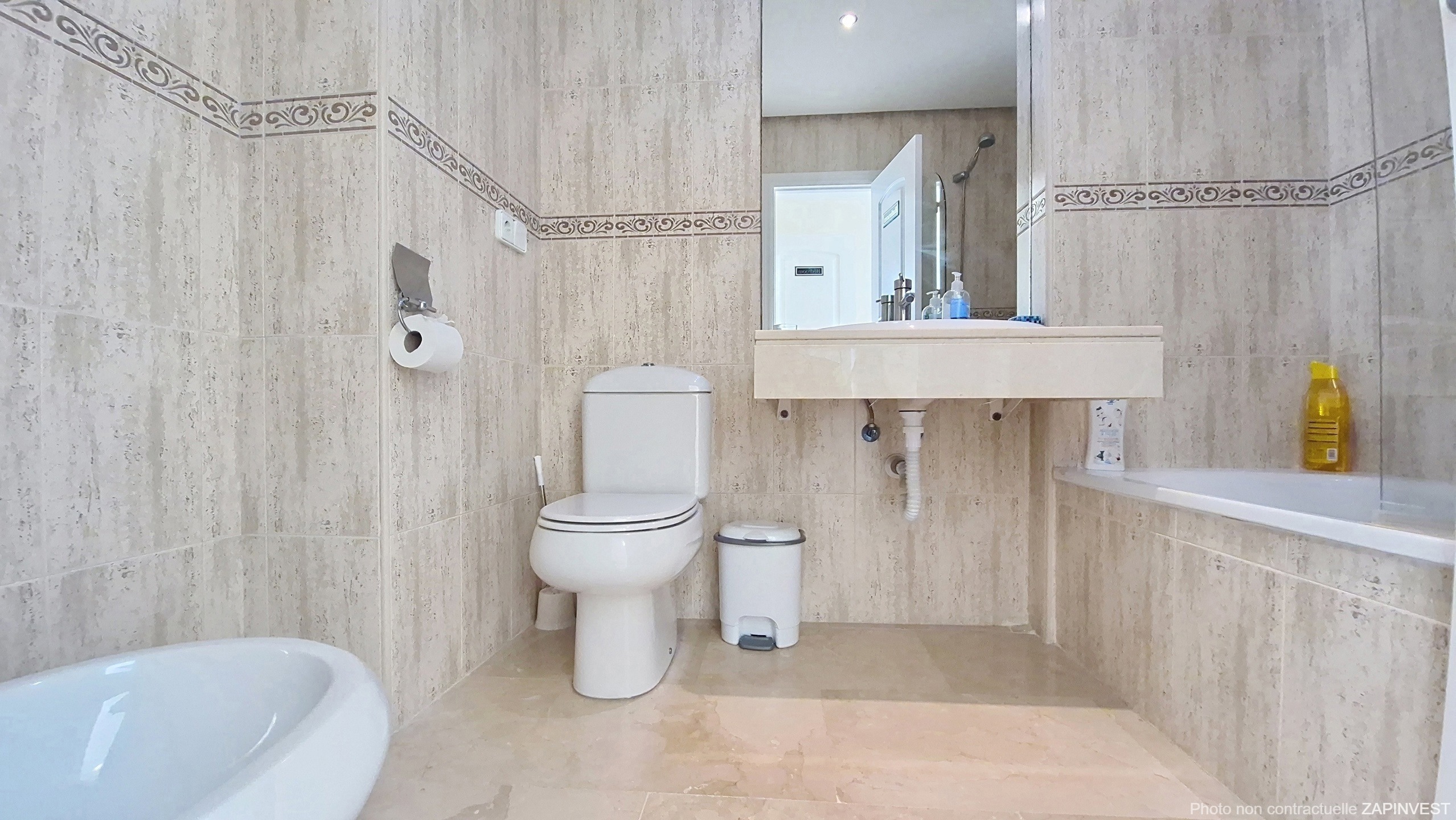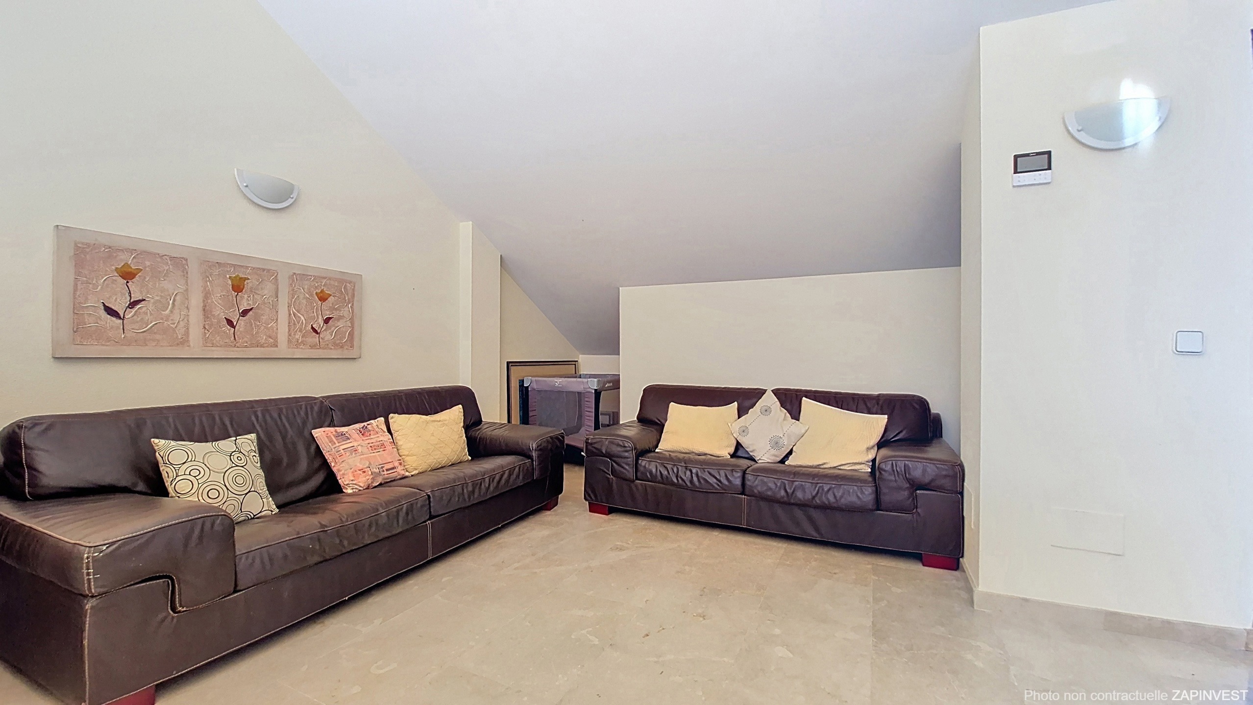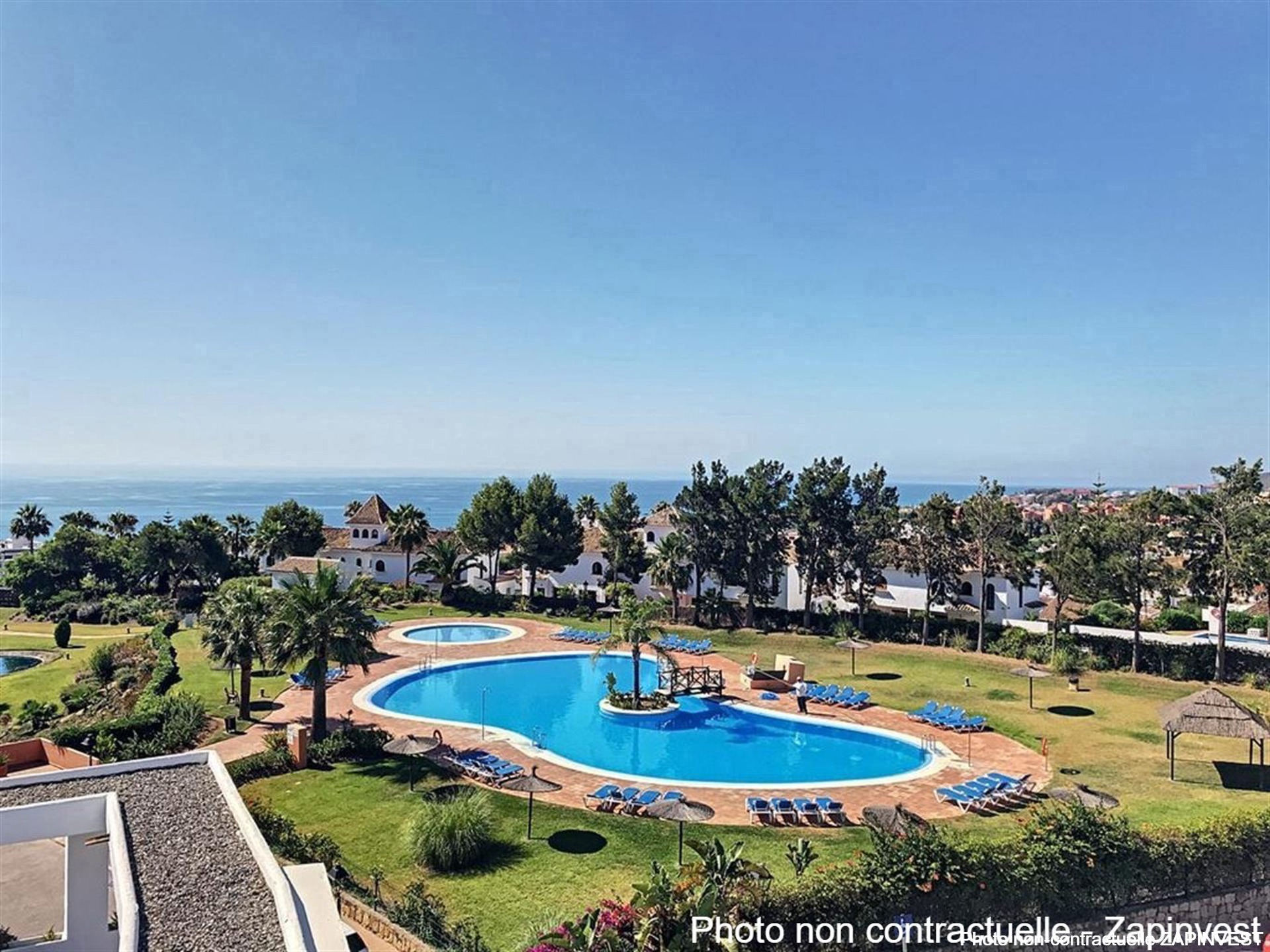 La résidence propose quatre piscines et deux terrains de padel. Elle bénéficie également d’une sécurité 24 heures sur 24 et est entièrement clôturée. L’accès se fait par une entrée sécurisée avec des gardes et une barrière. De plus, le bien dispose de deux places de garage.