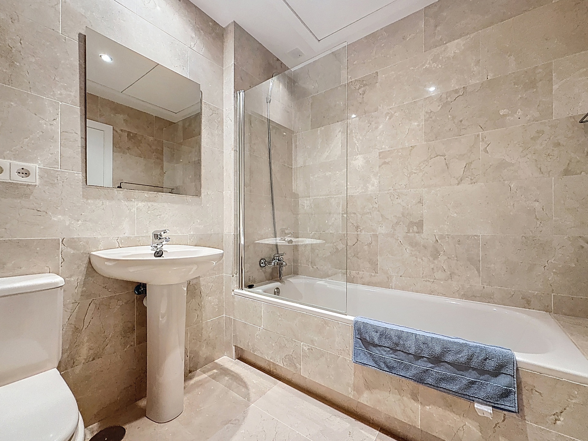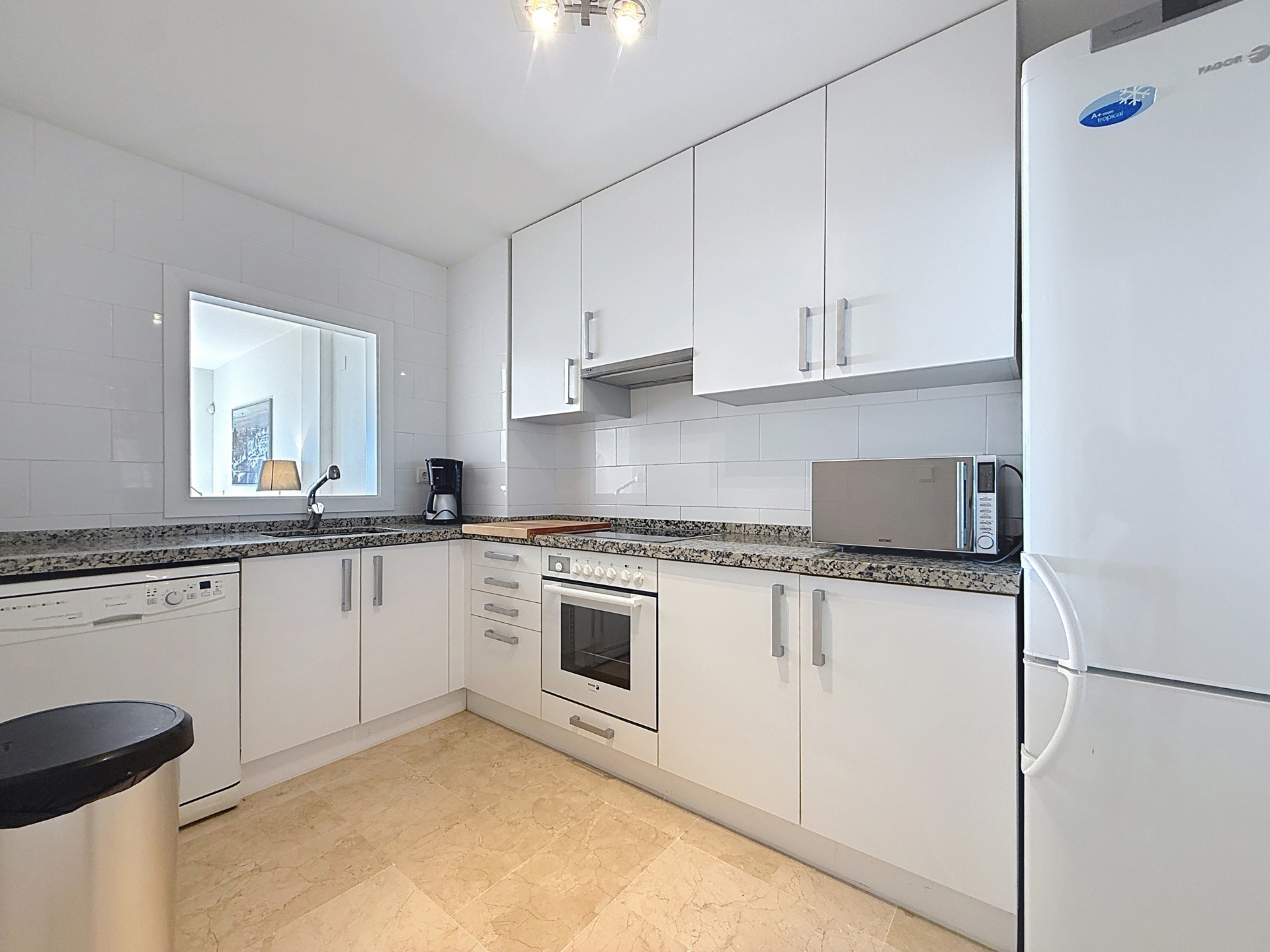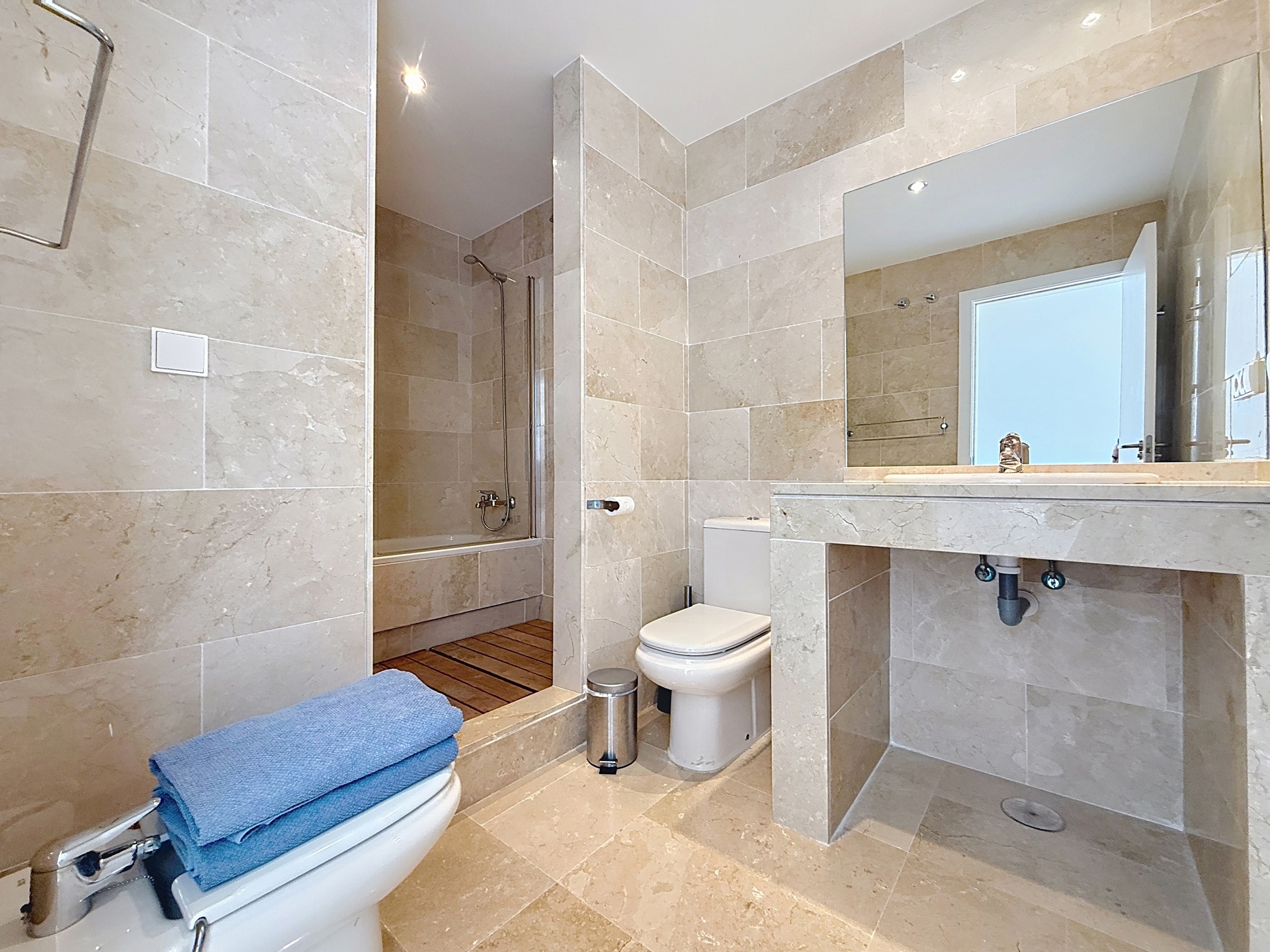 Dès l’entrée, l’appartement propose une distribution fluide : deux grandes chambres et deux salles de bains (dont une en suite), un séjour spacieux et lumineux prolongé par l’extérieur, ainsi qu’une cuisine équipée avec buanderie indépendante. Le bien est vendu entièrement meublé, prêt à être utilisé.