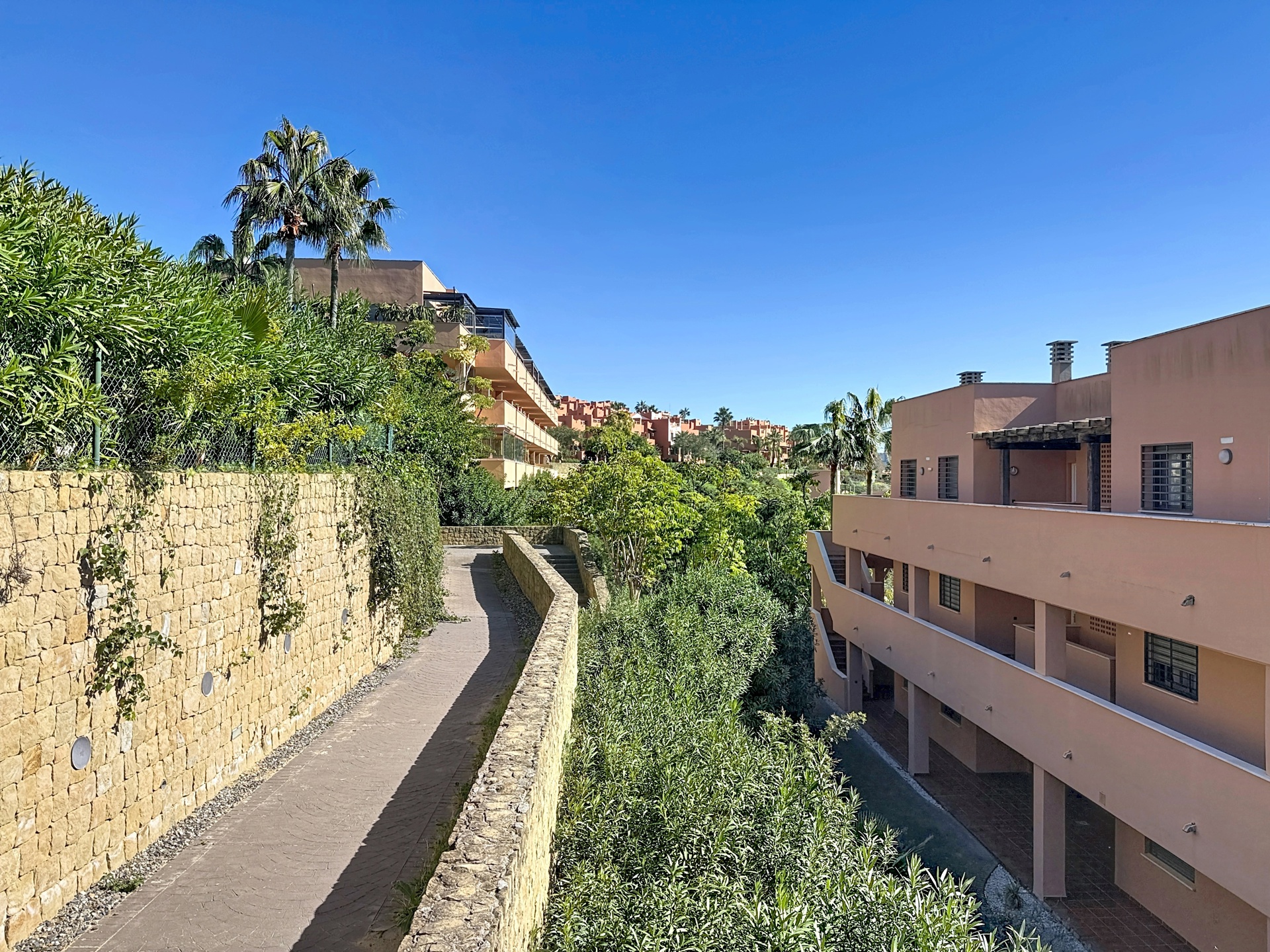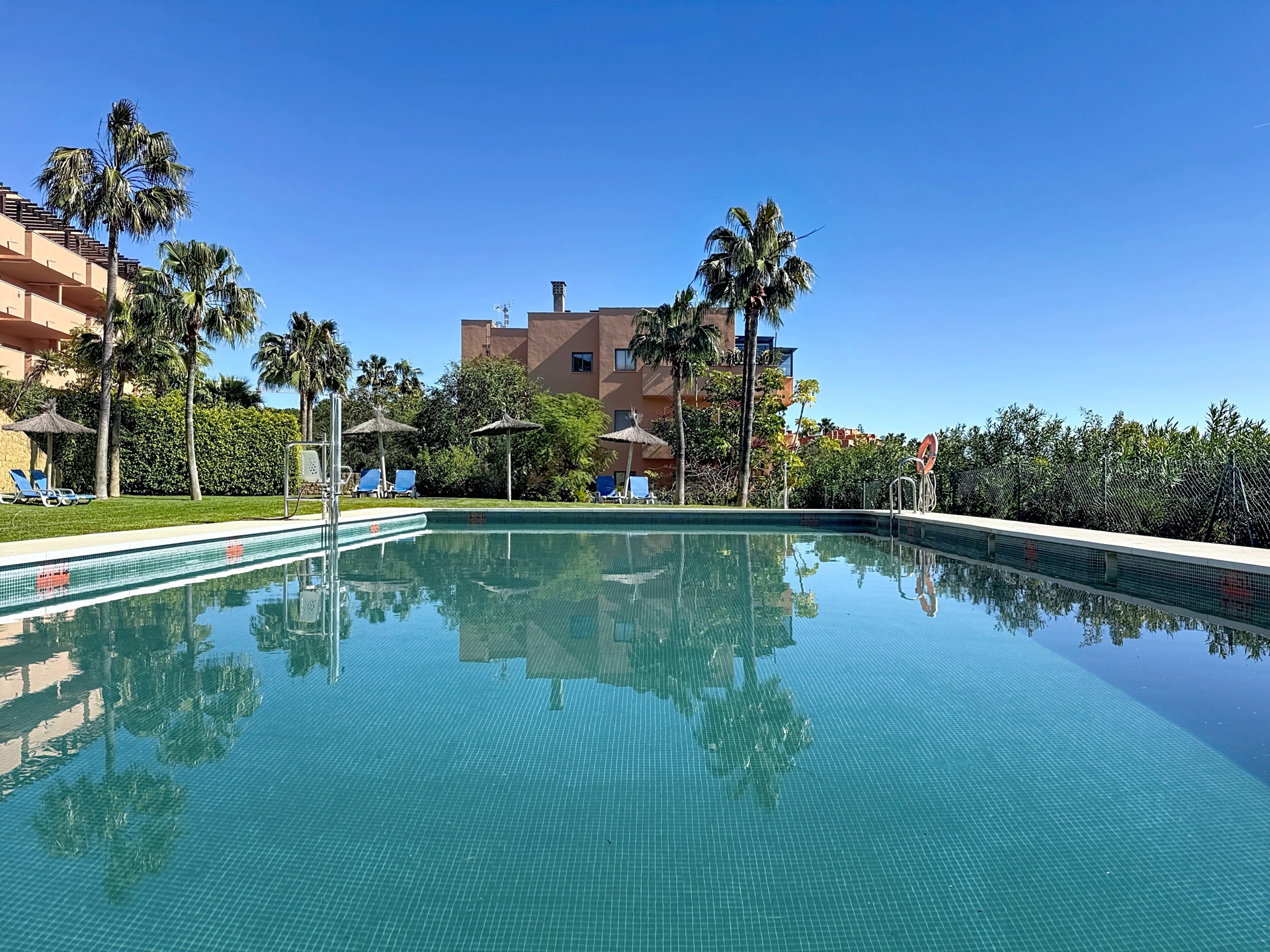 Implanté en pleine nature, le penthouse reste parfaitement connecté : plages, commerces et services à quelques minutes en voiture, sans oublier le port de plaisance de Sotogrande. Estepona se situe à une dizaine de minutes, et Marbella / Puerto Banús à environ 25 minutes.