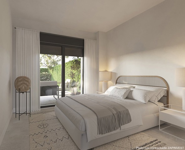 Vous est ici présenté un magnifique rez-de-chaussée de trois chambres à coucher et deux salles de bains avec une terrasse de 22 m2 plein sud. La zone des chambres à coucher est bien séparée de la zone de vie par un couloir de nuit. La chambre parentale est en suite et possède également son dressing.