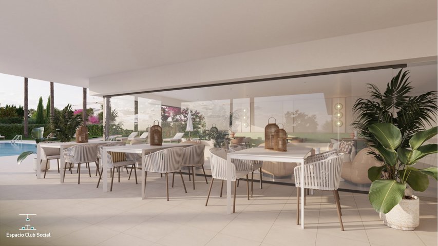 Les appartements de 1, 2 ou 3 chambres bénéficient tous d'une orientation privilégiée sud-ouest et d'un parking extérieur. Ils disposent également d'une variété de zones communes : deux piscines avec solarium, des zones de jardin aménagées, une zone de lecture et une salle de sport extérieure; Egalement d'un espace Social Club, d'un espace Gym, d'un Putting Green, d'un Point Zen pour se déconnecter sans avoir à sortir du complexe résidentiel.