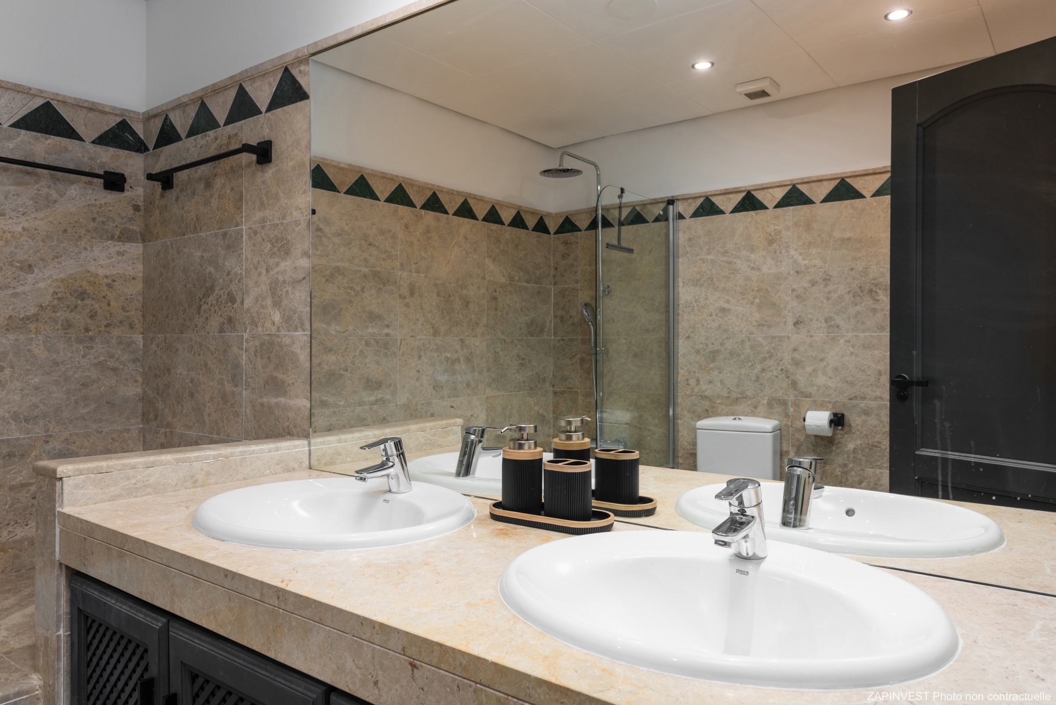 Ce superbe appartement de 176m² de trois chambres et deux salles de bains + une toilette privative, fait partie d'une splendide résidence au style andalou.