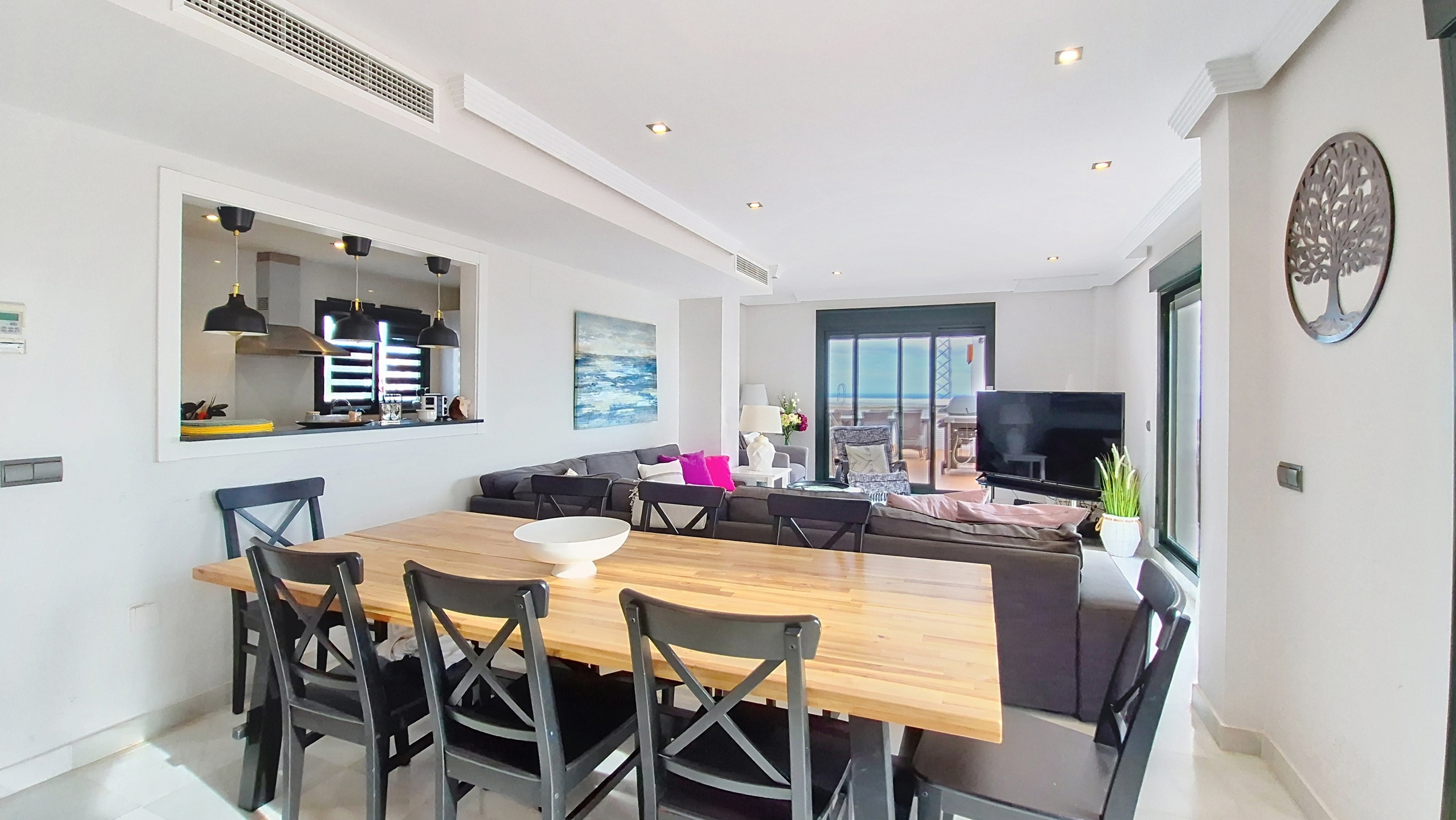 Les vues dégagées depuis toutes les terrasses et le solarium offrent un magnifique panorama diversifié sur le golf, les montagnes et la mer. Le bleu du ciel et les mille couleurs d’une fin de journée sont les vues que vous pourrez apprécier au quotidien.